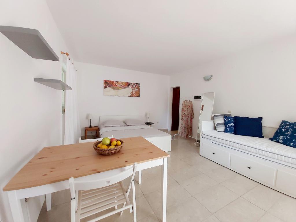 Квартира-студия с террасой площадью 12 м2. Квартира рассчитана на 2 человек. Большая двуспальная кровать, полностью оборудованная кухня, обеденный стол, ванная комната. Терраса и обеденный стол. Охраняемое парковочное место перед квартирой на одно транспортное средство. Рядом с пляжем. До пляжа Сланица 5 минут пешком, до центра Муртера 7 минут пешком.