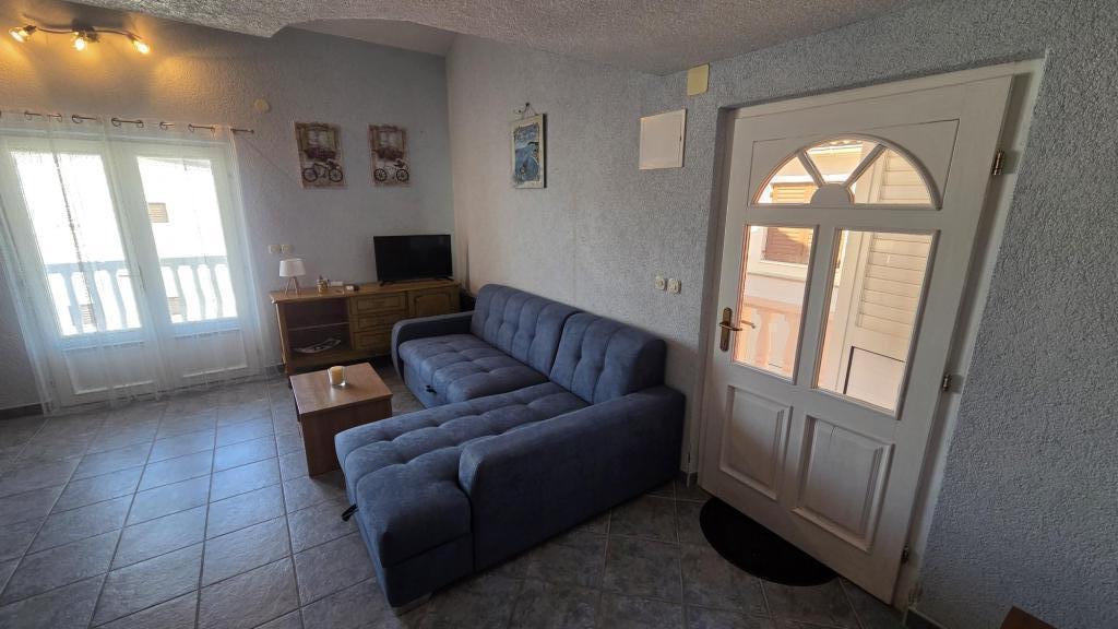 Апартаменты состоят из двух комнат: одна с двуспальной кроватью, другая с двумя отдельными кроватями, ванной комнаты, гостиной с кухней и большой террасы. Рядом с апартаментами есть парковка для автомобиля, мангал, кондиционер и Wi-Fi. До моря 5 минут пешком, до центра города и магазинов 10 минут пешком. Неподалеку находится красивый сосновый лес. Тихое и спокойное место.