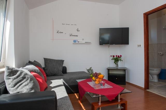 Апартаменты Fila состоят из 6 номеров: 4 однокомнатных апартаментов и 2 апартаментов-студии. Апартаменты расположены в тихом месте, примерно в 30 метрах от пляжа Муло-Врси и в 250 метрах от центра Муло-Врси, где находится множество ресторанов, сувенирных магазинов и лавок. В непосредственной близости, примерно в 50 метрах, расположены два кафе и ресторан быстрого питания. На пляже Муло-Врси предлагаются различные виды спорта, такие как кайтсерфинг, виндсерфинг, прокат лодок, зонтики и шезлонги.