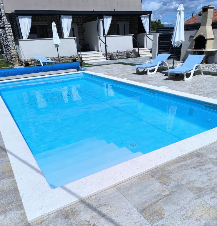 Бассейн с подогревом (закрыт 15.10.2025 - 1.5.2026) Добро пожаловать в апартаменты Royal Place, расположенные в очаровательном королевском городе Нин, всего в 16 км от исторического города Задар. Мы предлагаем две роскошные квартиры. Однокомнатные (СКОРО В 2026 ГОДУ семейные номера) и две спальни на первом этаже в тихом месте, всего в 200 метрах от живописной набережной, местных ресторанов и центра города. Пляж находится в 900 метрах. Большой этаж здания включает в себя тихий, огороженный двор с пышной средиземноморской растительностью. Кроме того, есть бассейн с подогреваемой соленой водой, зона для загара с шезлонгами и зонтиками, душ на открытом воздухе, гриль. Верхний этаж здания не имеет доступа.