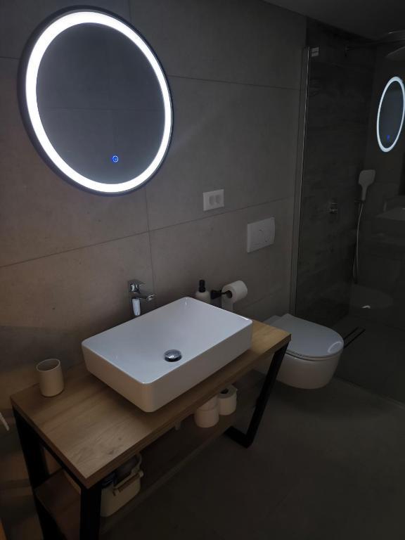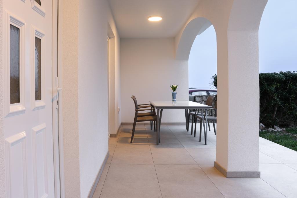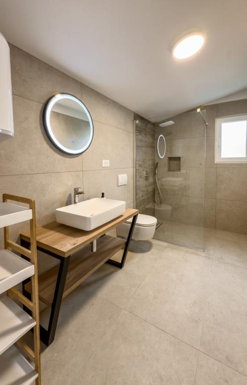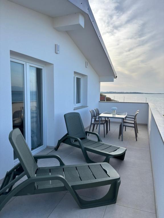 Просторные, недавно отремонтированные и полностью оборудованные апартаменты, расположенные всего в 15 метрах от моря. Апартамент 1 находится на первом этаже (100 м² включая террасу) и имеет частный сад, в то время как Апартамент 2 расположен на верхнем этаже (70 м² с балконом площадью 50 м²), что делает их идеальными для семей и групп друзей. Каждый апартамент включает две спальни, гостиную, кухню и ванную комнату. Гостям предоставляются кондиционер, телевизор и Wi-Fi. На территории также есть частная парковка и открытый душ. Особое впечатление производят волшебные закаты и потрясающий вид на горный массив Велебит.