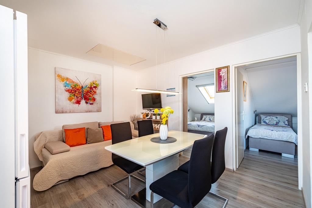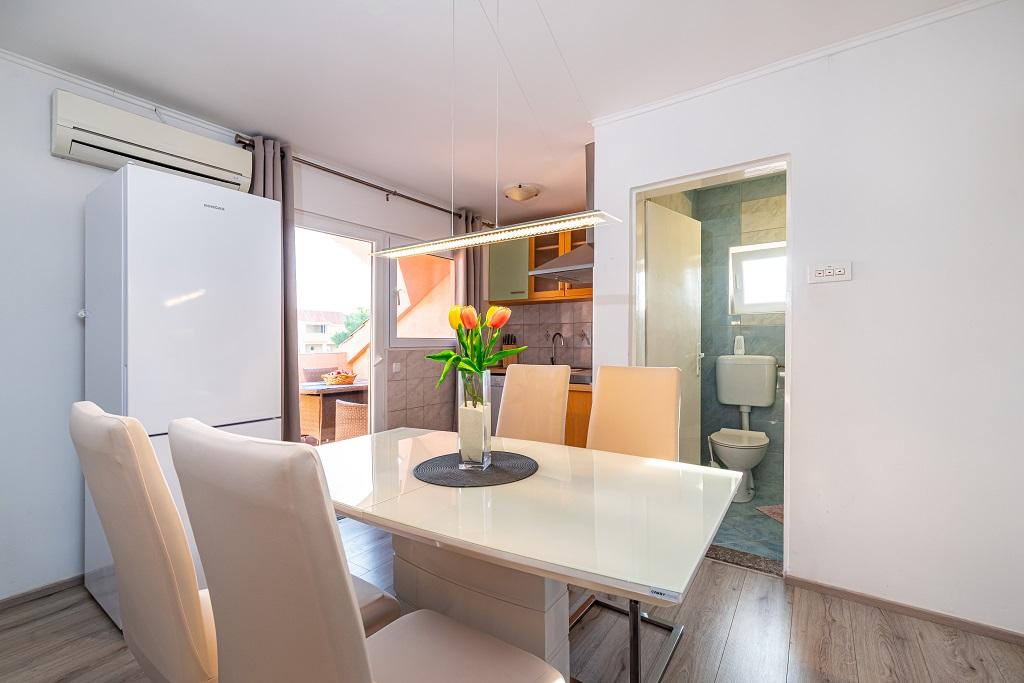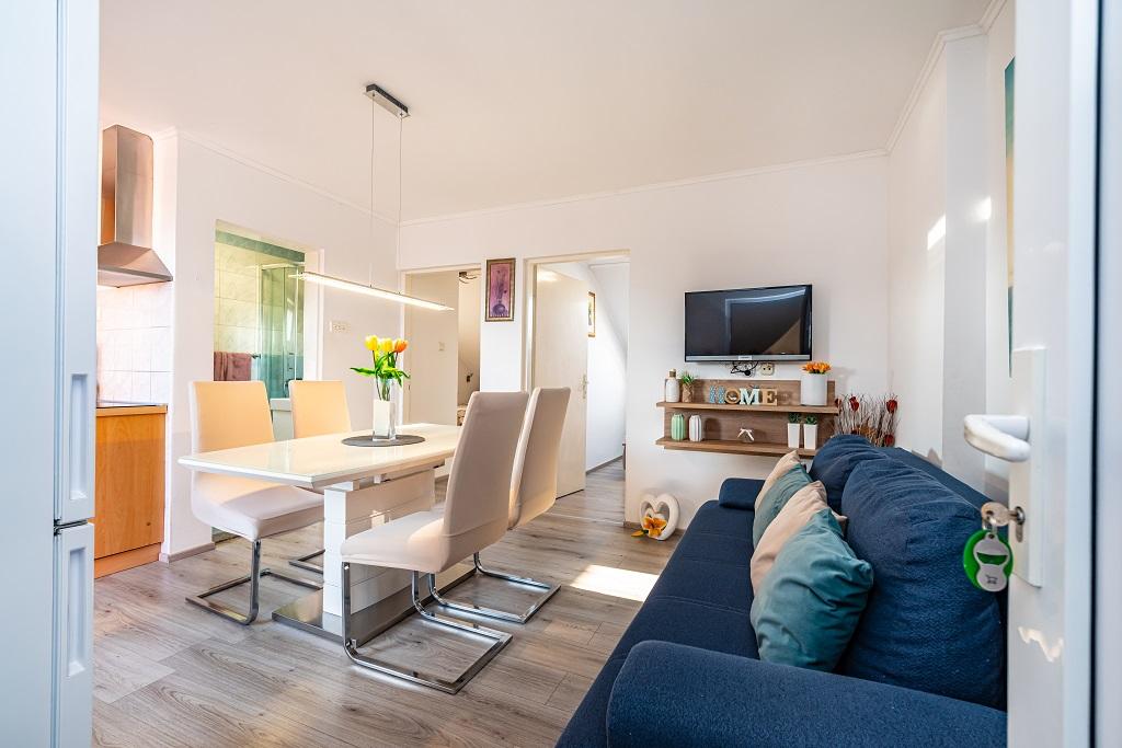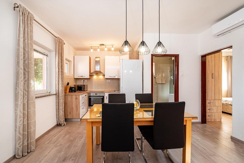 Наши современные апартаменты расположены в Нине, прибрежном городе в южной части Нинского залива на полуострове Ждрияц, в 17 км к северу от Задара. Это старейший королевский город в Хорватии, расположенный недалеко от знаменитого песчаного пляжа Ждрияц. Нин – это не только исторический город. Вместе со своими окрестностями он также предоставляет благоприятные условия для отдыха и развлечений. Вокруг Нина расположены несколько длинных песчаных лагун с песчаными пляжами, вдали от толп туристов, и промышленная зона с отличным микроклиматом. Апартаменты расположены в красивом и очень тихом районе, менее чем в пяти минутах ходьбы от пляжа и Адриатического моря. Дом двухэтажный. Хозяева живут на первом этаже, две квартиры – на втором, и две – на третьем. Дом отдельно стоящий, участок огорожен, поэтому он очень подходит для детей. Также имеется парковка на пять автомобилей и барбекю в саду. Апартаменты не приспособлены для инвалидных колясок. Доступен беспроводной интернет. Пляж и море находятся всего в 100 метрах от апартаментов, а другие объекты инфраструктуры — в 600 метрах.