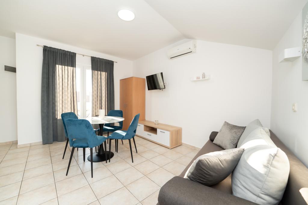 Отличные апартаменты, хорошо оборудованные. Большим преимуществом является сад и детская площадка, где дети могут играть. Апартаменты расположены очень близко к морю, что является большим плюсом для детей. Тихий район, около 20 минут ходьбы до центра города, который кипит жизнью. Хозяин радушный и услужливый. Я рекомендую его с чистой совестью, и я надеюсь, что мы приедем туда снова когда-нибудь.