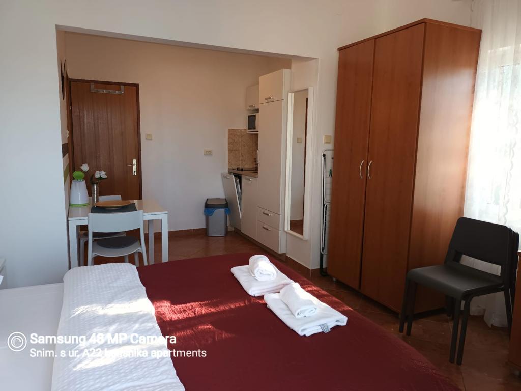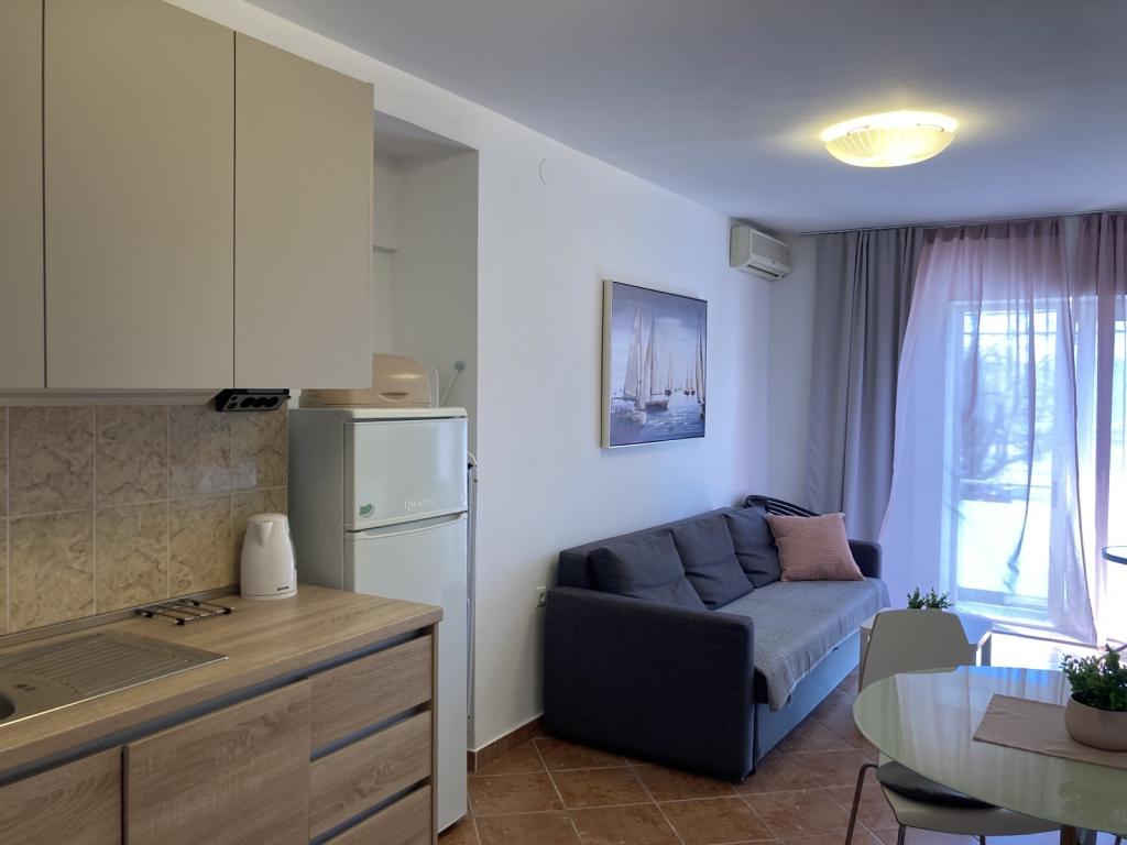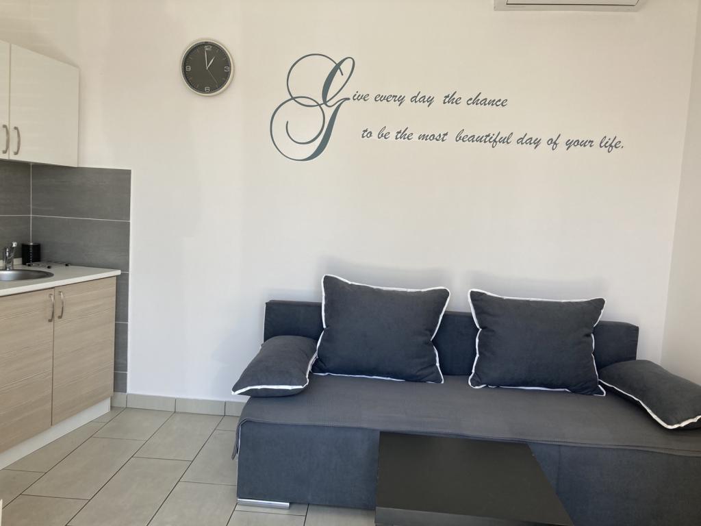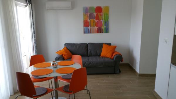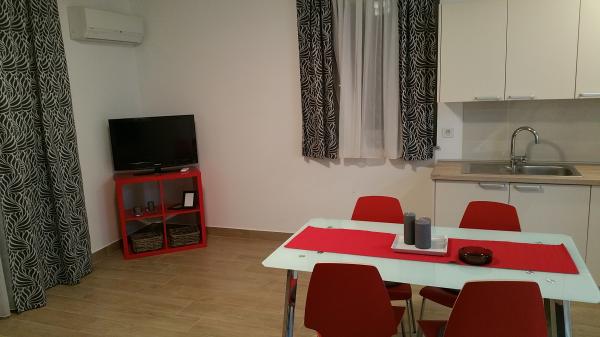 Недавно отремонтированные и современно оборудованные апартаменты, расположенные вдоль дороги недалеко от моря и в ста метрах от центра. В квартирах есть балконы с видом на море. В квартирах есть Wi-Fi, телевизор с плоским экраном, спутниковое телевидение, инверторный кондиционер. Расстояние до пляжа составляет 100 м и бывает песчаным, каменистым, галечным и бетонным.