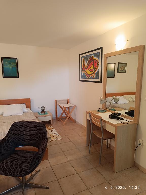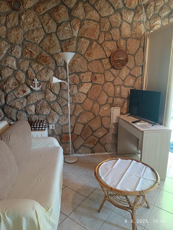 Две большие двухкомнатные квартиры (60 м2) расположены на 2 этаже дома с прекрасным видом на море, а однокомнатная квартира поменьше (45 м2) расположена в отдельном каменном (деревенском) доме рядом с главный дом, с которым он разделяет сад и двор. Предоставляется бесплатная парковка. Все гости могут пользоваться принадлежностями для барбекю и террасой в саду. Расстояние от моря ок. 250 м вниз по склону, где находится набережная с ресторанами и различными типами пляжей. Расстояние до центра около 1,5 км, по набережной у моря.