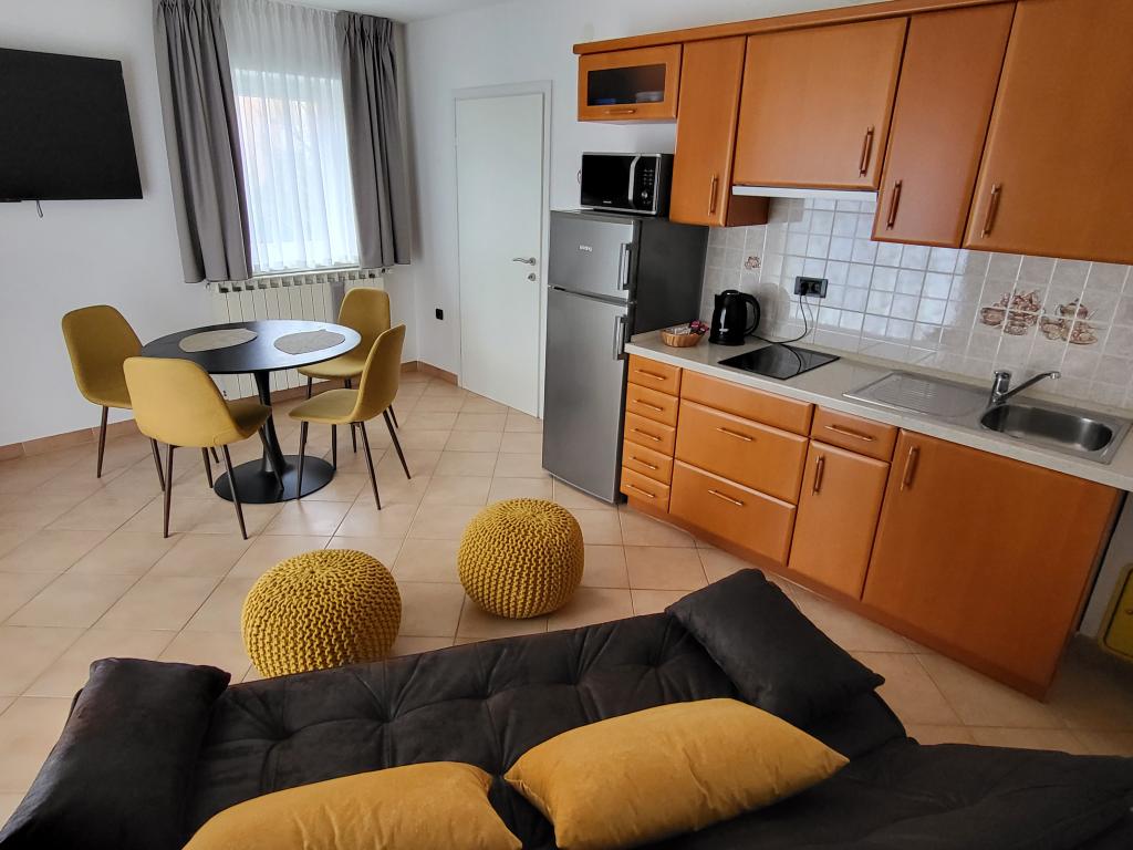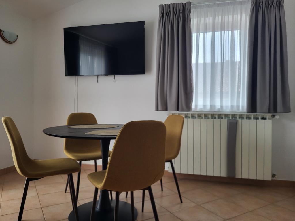 Для обеспечения большего комфорта мы сдаем квартиры исключительно для максимум двух человек. Дом с двумя квартирами расположен в тихой части Новиграда. Добраться до поселка очень просто, расстояние от главной дороги достаточно, чтобы не ощущать влияния транспорта. Улицами поселка пользуются только местные жители и гости, движение транспорта практически отсутствует. Перед домом достаточно места для парковки. Две квартиры в доме гарантируют высокий уровень отдыха, а также тишину и теплые отношения. Им оказывается поддержка в течение всего года. Каждая квартира имеет площадь 40 м² и отдельный вход. В квартире на первом этаже есть собственная терраса, а в квартире наверху — балкон. Квартира рассчитана на двух человек. В номере есть отдельная спальня с двуспальной кроватью. Кухня полностью оборудована. Квартиры оборудованы кондиционерами. В апартаментах есть центральное отопление, поэтому они подойдут любителям велоспорта в любое время года. Размещение домашних животных не допускается.
