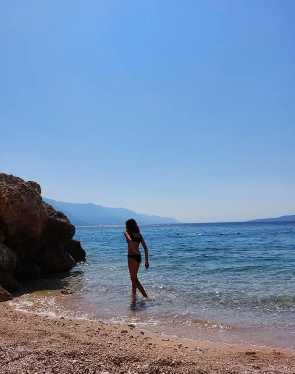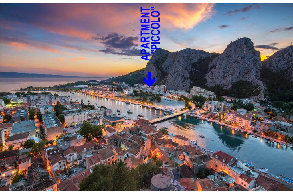 Апартаменты «Пикколо» расположены в 5-10 минутах ходьбы от старого города Омиша и примерно в 5-7 минутах ходьбы от песчаного пляжа (Велика плажа). Их площадь составляет 25 м² и состоит из гостиной с обеденной зоной и небольшой кухней, отдельной спальни и ванной комнаты с душем и стиральной машиной. На хорошо оборудованной кухне гости найдут микроволновую печь, холодильник, плиту, кофеварку, чайник и посуду. Апартаменты были частично отремонтированы в 2024 году. Они расположены в жилом доме, с отдельным входом, через лестницу на террасу с южной стороны здания. Гостям предоставляется бесплатная парковка, Wi-Fi, кондиционер (все включено в цену). Типы кроватей: 1 двуспальная кровать и диван-кровать. Количество человек: 2.