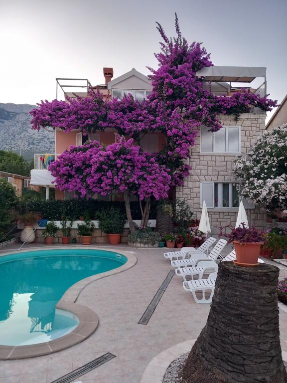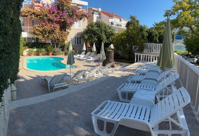 Вилла «Melita» расположена прямо у моря, на тихой набережной. Это место идеально подходит для тех, кто ищет спокойного отдыха. Дом окружен прекрасным садом со средиземноморской растительностью, где расположен бассейн площадью 32 м² с 14 шезлонгами. К вашим услугам также барбекю. Рядом с каждым апартаментом есть собственная парковка. Во всех апартаментах есть кондиционер, бесплатный Wi-Fi, спутниковое телевидение, полностью оборудованная кухня, ванная комната и собственная терраса. Банные полотенца и постельное белье включены в стоимость. Дом находится в нескольких минутах ходьбы от нескольких ресторанов, кафе, магазинов и пекарен, где есть всё необходимое для повседневной жизни. Главное преимущество — главный городской пляж Трстеница находится всего в 40 метрах.