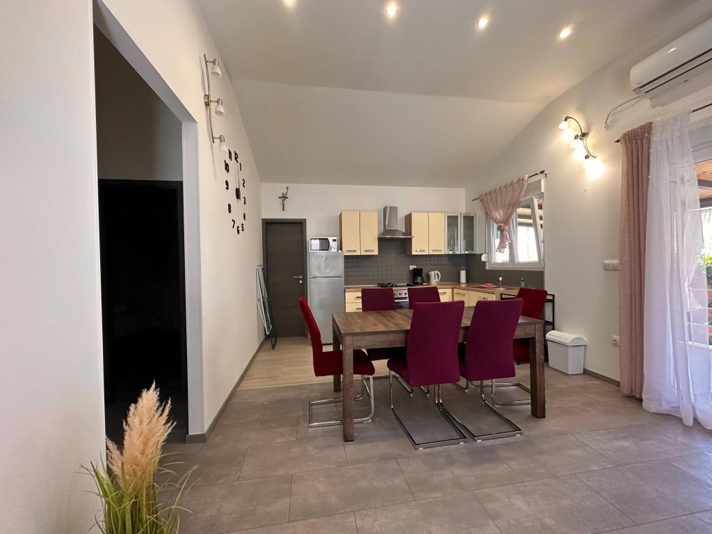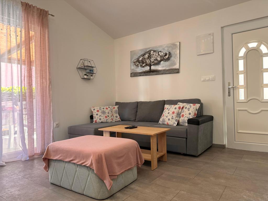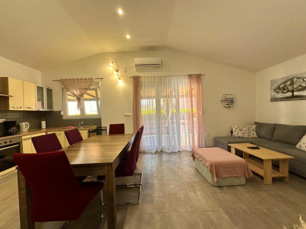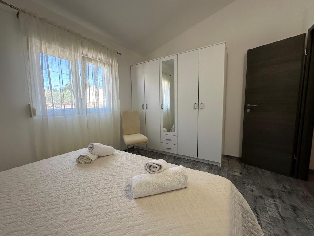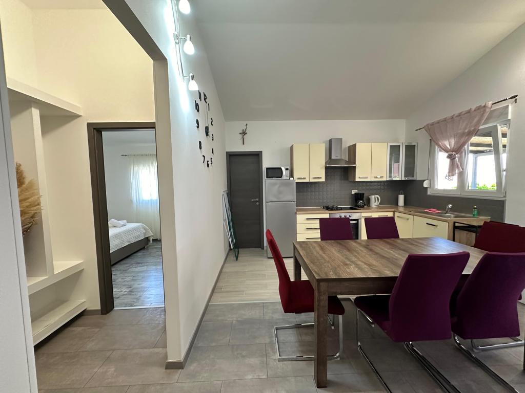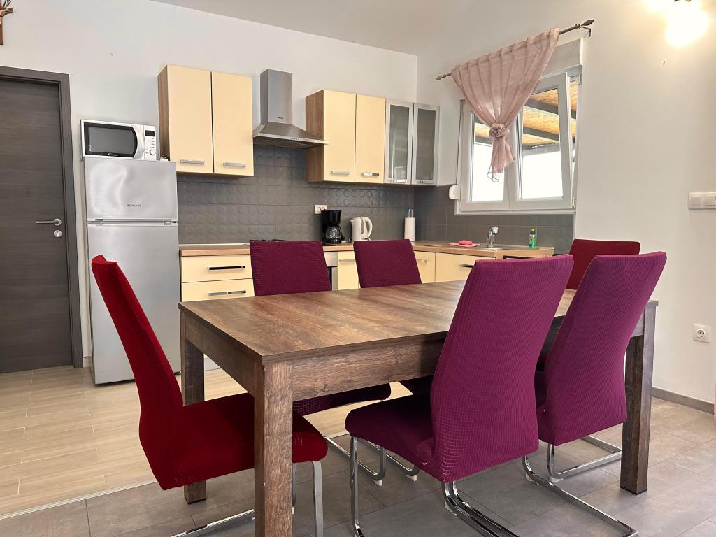 В апартаментах могут разместиться до 5 гостей. В распоряжении гостей две спальни с двуспальными кроватями (160x200) и дополнительная кровать для ребенка до 12 лет в гостиной. Гостям предоставляются постельное белье и полотенца, ванная комната с душем и стиральной машиной, уютная гостиная с телевизором и полностью оборудованная кухня (холодильник, плита, духовка, посудомоечная машина, чайник и посуда). Крытая терраса идеально подходит для утреннего кофе или отдыха, а также имеется частная парковка. Двор огорожен. Апартаменты расположены в 800-900 м от ближайшего пляжа, а магазин и пекарня находятся всего в 100 м. До апартаментов легко добраться с выезда с автомагистрали возле Пакоштане, примерно за 15 минут езды. Добро пожаловать! :) Пожалуйста, используйте форму обратной связи для всех вопросов! СПАСИБО :) Прайс-лист на сезон 2026 года обновлен!