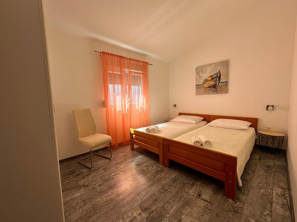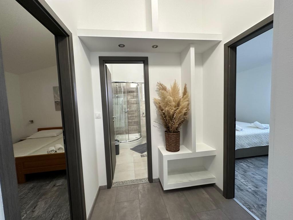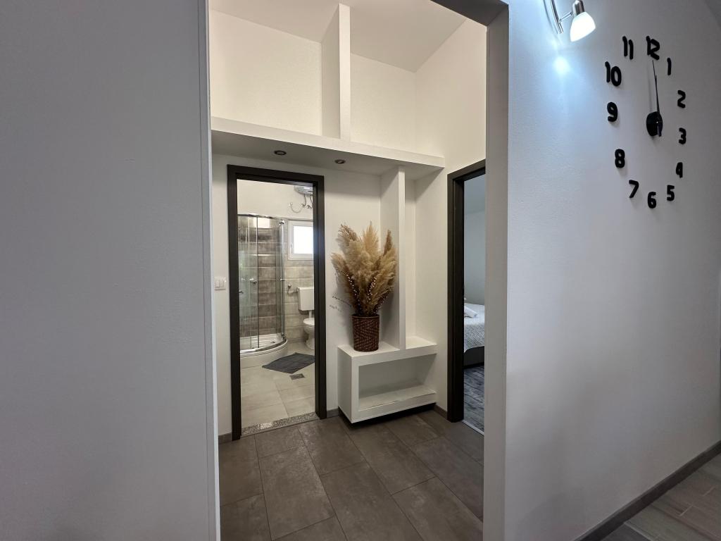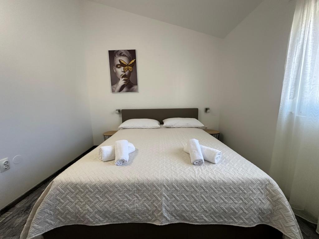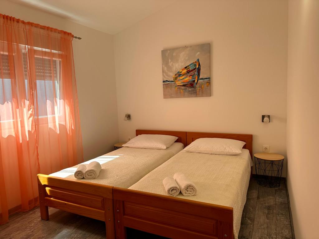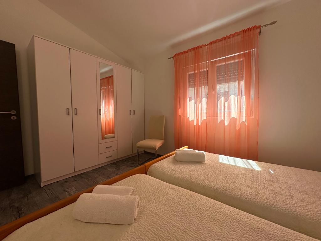 В апартаментах могут разместиться до 5 гостей. В распоряжении гостей две спальни с двуспальными кроватями (160x200) и дополнительная кровать для ребенка до 12 лет в гостиной. Гостям предоставляются постельное белье и полотенца, ванная комната с душем и стиральной машиной, уютная гостиная с телевизором и полностью оборудованная кухня (холодильник, плита, духовка, посудомоечная машина, чайник и посуда). Крытая терраса идеально подходит для утреннего кофе или отдыха, а также имеется частная парковка. Двор огорожен. Апартаменты расположены в 800-900 м от ближайшего пляжа, а магазин и пекарня находятся всего в 100 м. До апартаментов легко добраться с выезда с автомагистрали возле Пакоштане, примерно за 15 минут езды. Добро пожаловать! :) Пожалуйста, используйте форму обратной связи для всех вопросов! СПАСИБО :) Прайс-лист на сезон 2026 года обновлен!