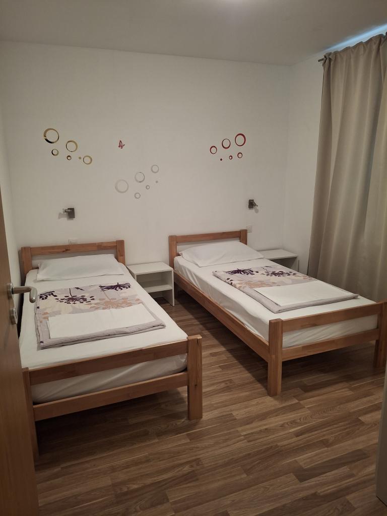 Мы предлагаем вам размещение в пяти великолепно оформленных и оборудованных апартаментах в новом доме, расположенном всего в 200 метрах от пляжа. Три апартамента рассчитаны на 4 человек, а два других — на 5. Проведите спокойный семейный отдых в небольшом и тихом городке Пакоштане, в самом сердце Средиземноморья и Адриатики.