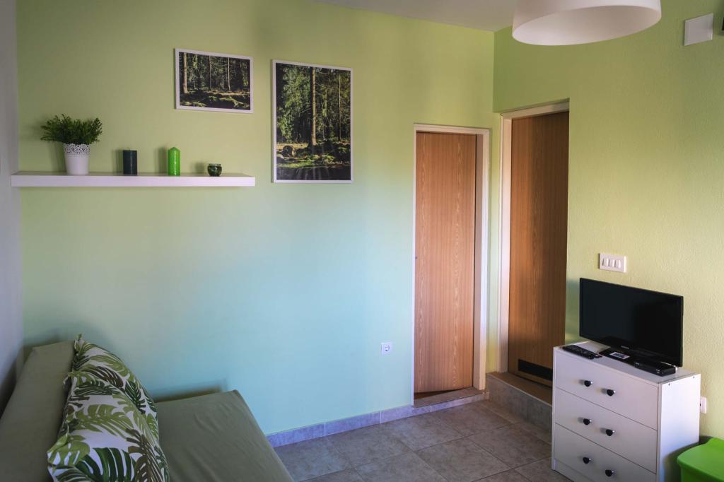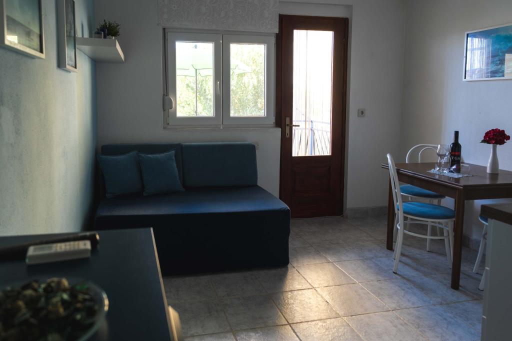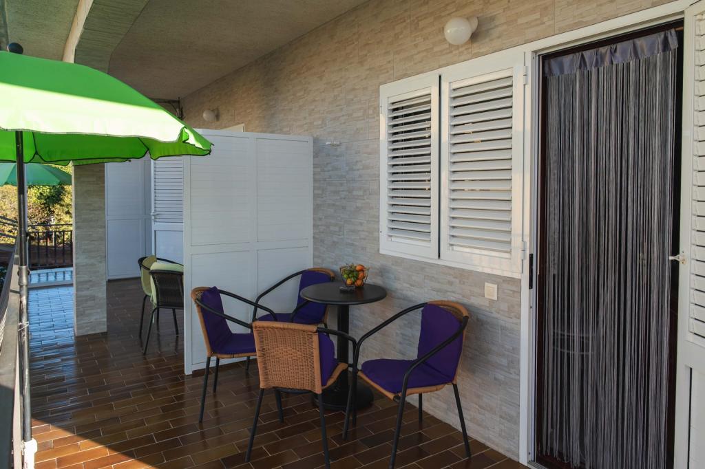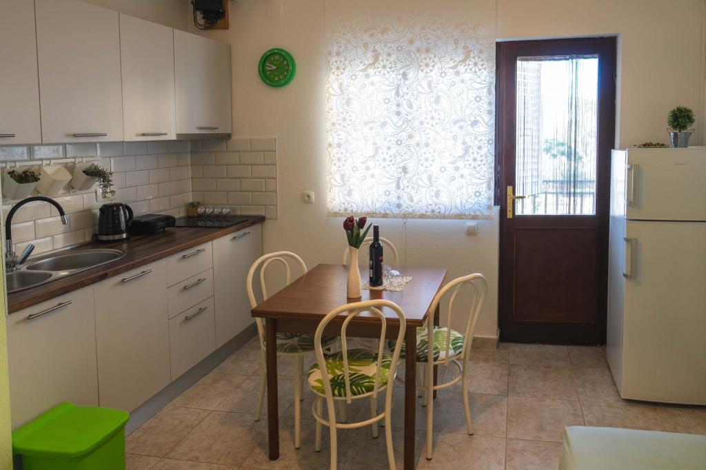 Четыре APP (2 2), в тихой части Пакостане. Приложение состоит из спальни, где двойной и тройной шкаф. Гостиная с кроватью (200x140), стол с четырьмя стульями, а в одном углу кухни. Кухня состоит из sudopra, печи kuhanhe с печью и холодильником. Квартира принадлежит кондиционером и телевизором. В передней части террасы APP с столом и четырьмя стульями для вашего приложения. APP находится на первом этаже частного дома. Двухкомнатные апартаменты состоят из двух спален, кухня, столовая и ванная комната с душевой кабиной. В апартаментах есть большая терраса с видом на море, кондиционер. ТВ. Во дворе барбекю детские качели и парковка на огороженной территории.