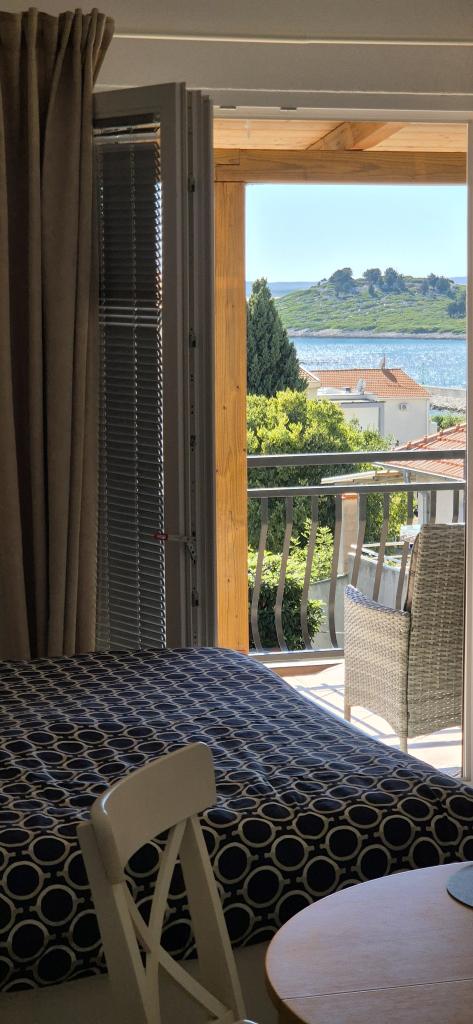 Мы были в этих апартаментах у Иваны в этом году. Нам посчастливилось жить в 2 квартирах наверху. Апартаменты очень красивые, со вкусом оформлены, чистые, есть все необходимое. Отличный вид с балкона, отличный балькон! Может быть, 80 метров до пляжа, но и близко к центру. Хозяин Иван, очень приятный и очень позитивный человек! Мы оцениваем это пребывание очень положительно, и, возможно, мы вернемся туда однажды. Рекомендую всем!