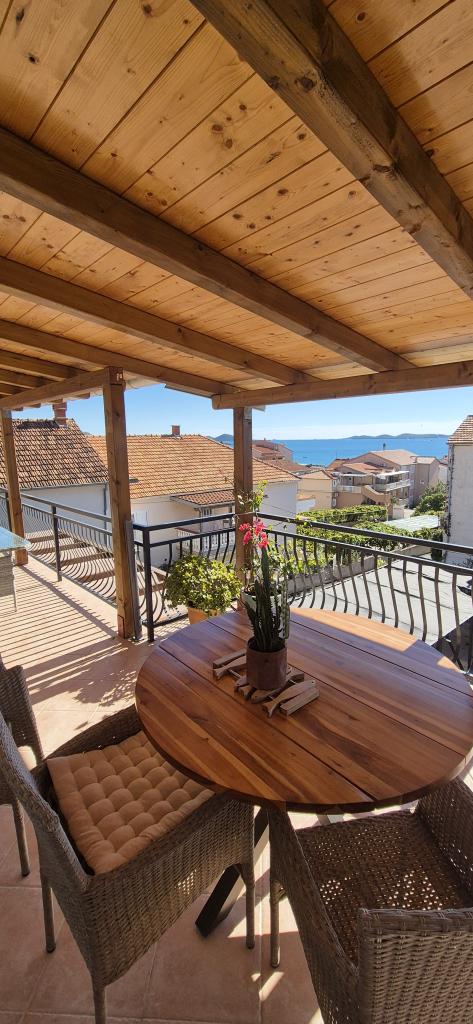 Отличное расположение, отличная квартира. С террасы открывается вид на море. До пляжа 2 мин пешком, до центра 3 мин, парковка перед квартирой в тени под навесом. Хозяйка (Ивана) замечательный человек, добрый, отзывчивый, всегда готов помочь. В основном все отлично. Мы обязательно вернемся.