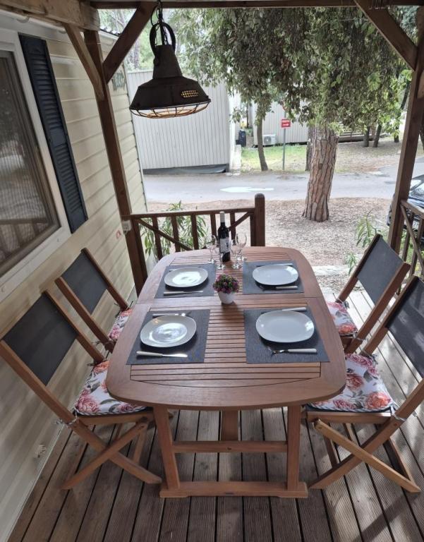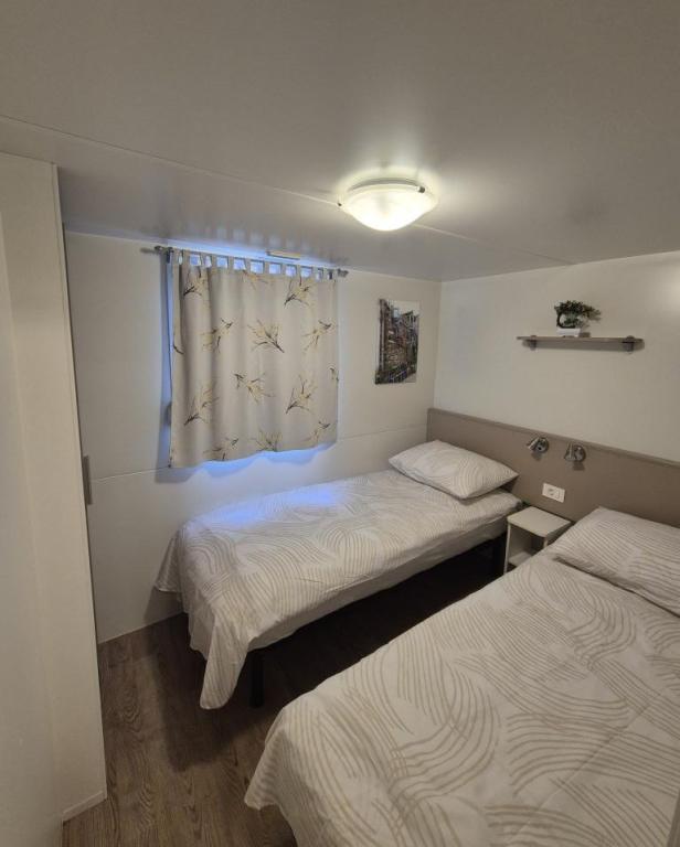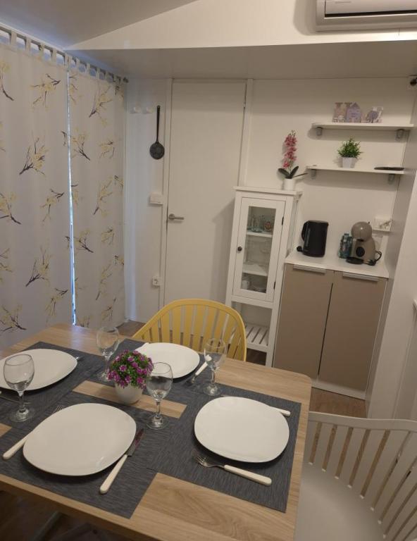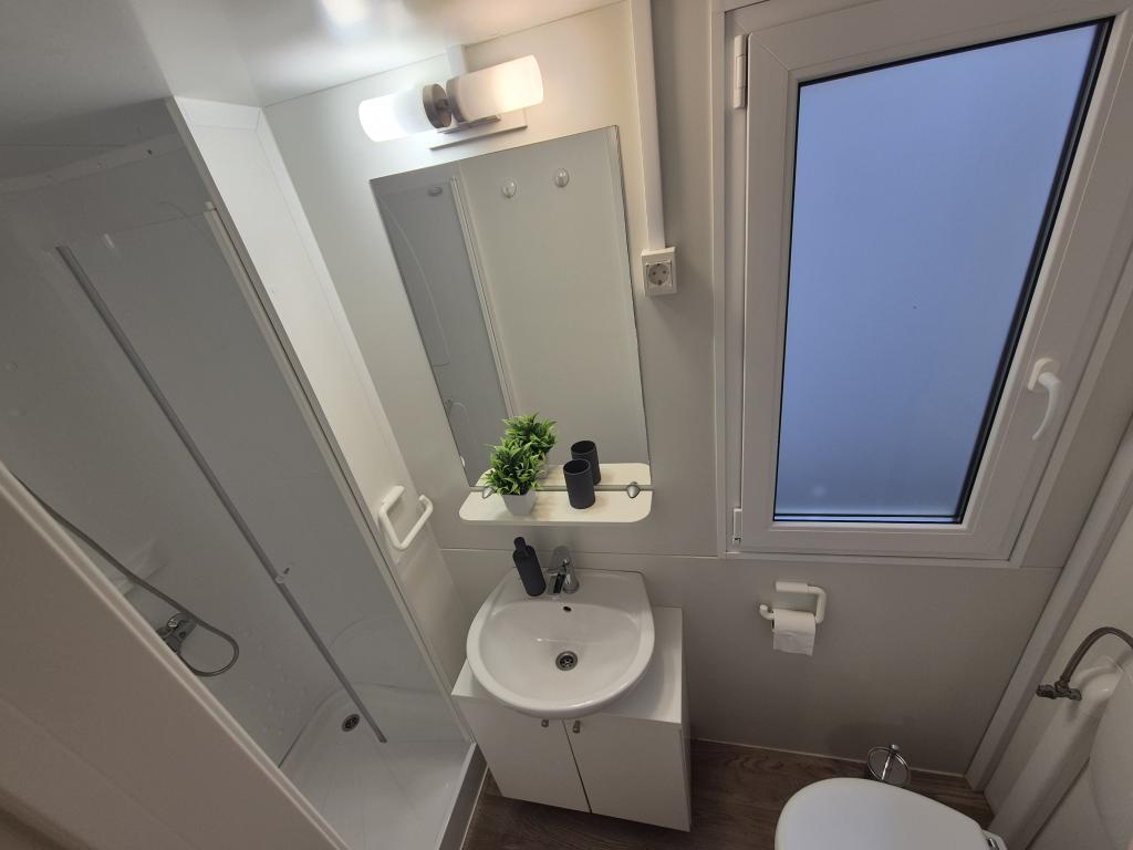 Комфортабельное размещение: Мобильный дом Glamour Pakoštane в Пакоштане предлагает две спальни, две ванные комнаты и просторную гостиную. В доме есть полностью оборудованная кухня, кондиционер и бесплатный Wi-Fi. Удобства для отдыха: Гости могут пользоваться террасой, баром и детским бассейном. Дополнительные удобства включают обеденную зону, садовую мебель и бесплатную частную парковку на территории. Отличное расположение: Кемпинг расположен в 27 км от аэропорта Задара, в нескольких шагах от пляжа Пунта. Неподалеку находятся пристань Корнати и Музей наследия Биограда, оба в 8 км. В окрестностях есть возможности для занятий парусным спортом.