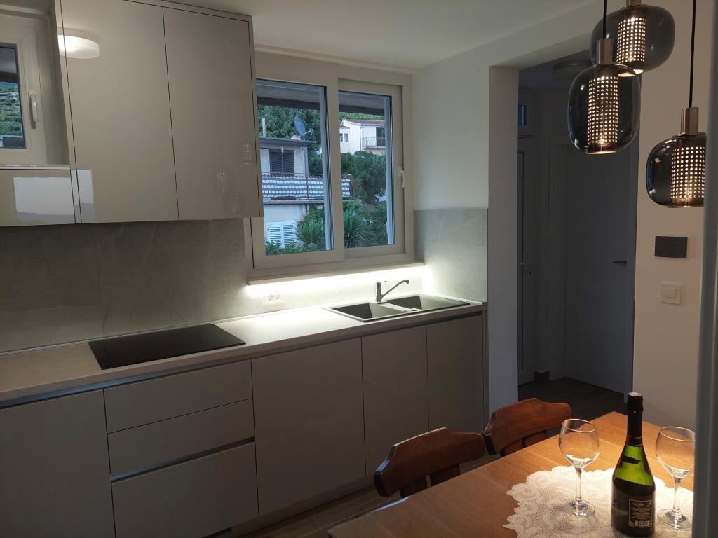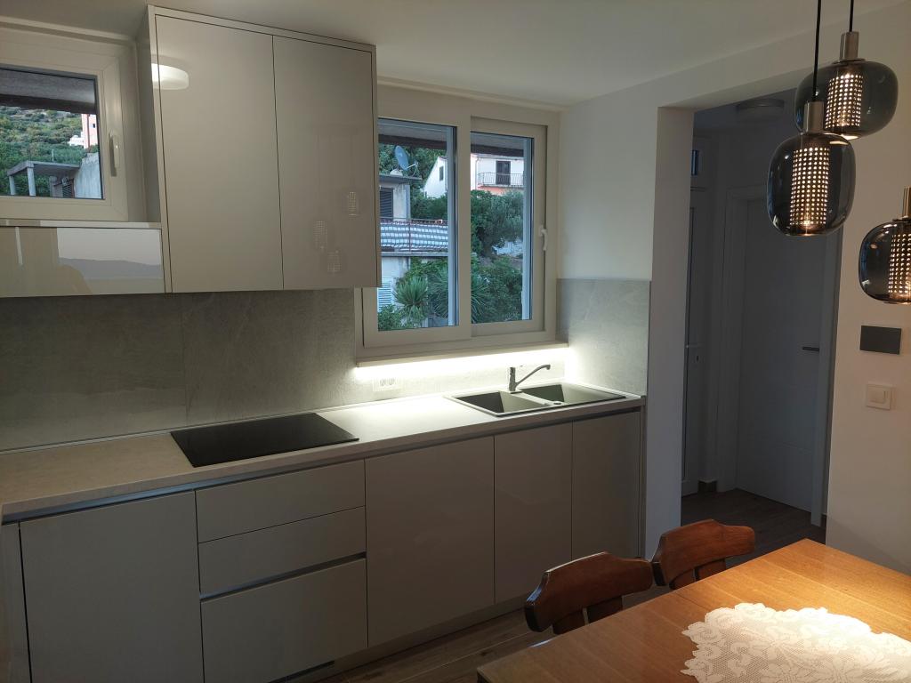 Квартира полностью отремонтирована и оборудована современной кухней и ванной комнатой. Ближайший пляж находится примерно в 2-3 минутах ходьбы от квартиры, а центр города с ресторанами и кафе — примерно в 10 минутах ходьбы. С балкона открывается частичный вид на море.