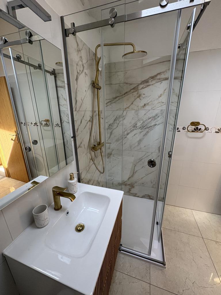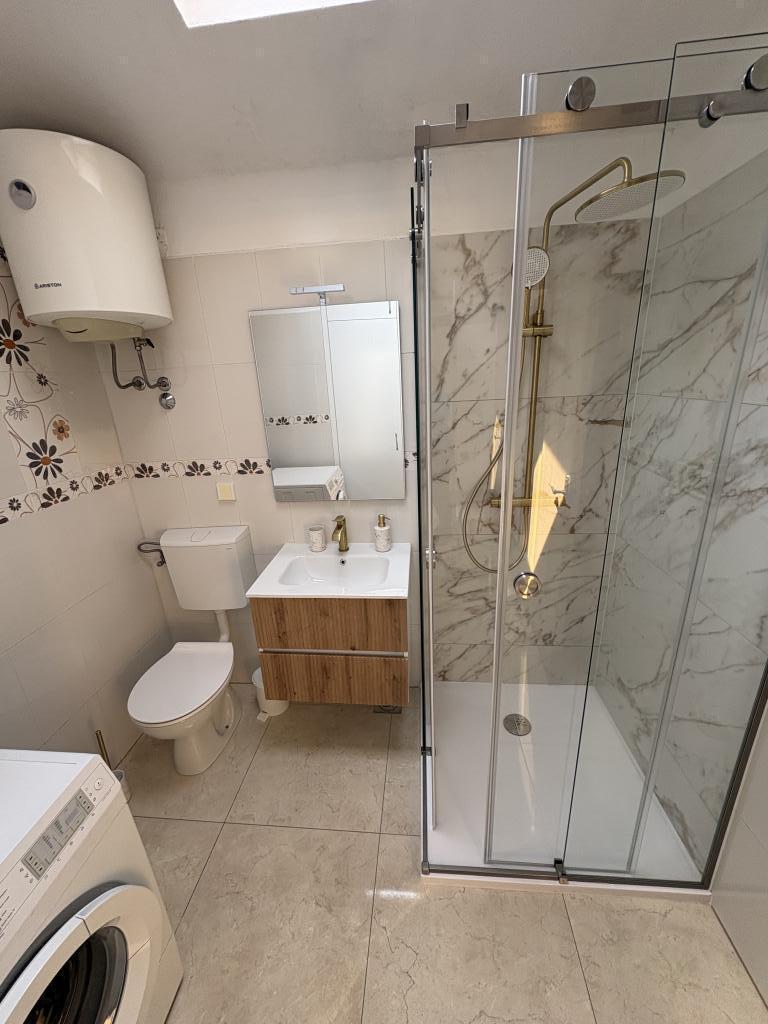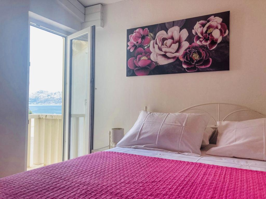 Квартира 6 для 2-х человек с прекрасным видом на море, солнечный и очень просторные, с тремя спальнями с двуспальными кроватями, гостиная с двуспальной кроватью, две ванные комнаты, массажный душ, два кондиционера, индукционная плита, посудомоечная машина, стиральная машина , кофеварка, электрический чайник, микроволновая печь и холодильник. Терраса с камином, площадкой для барбекю и терраса с видом на море, которые имеют отдельные столы и стулья. Телевизор в гостиной, а также предоставляется беспроводной доступ в Интернет. Она оснащена посуды для приготовления и подачи пищи и напитков и столовых приборов в достаточном количестве. Он расположен на первом этаже дома в центре города. Он расположен недале