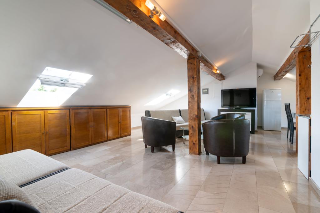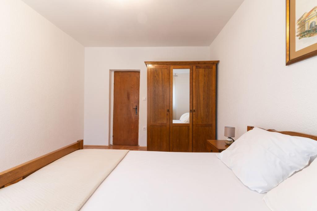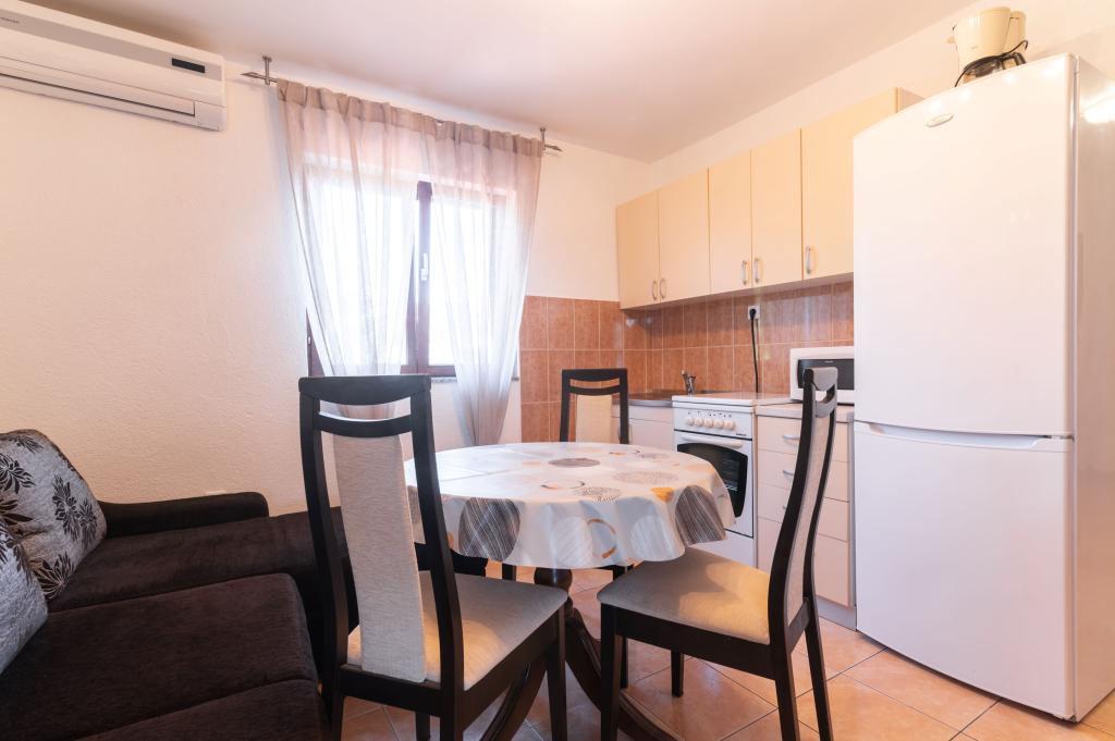 Дом расположен в первом ряду от моря, недалеко от центра Прека. Уютная, недавно отремонтированная квартира расположена на первом этаже дома и имеет 2 спальни, детскую комнату, гостиную с кухней, ванную комнату и террасу. В номерах есть выход на балкон с видом на пляж и море. Из гостиной можно выйти на террасу с видом на пляж и море. В гостиной есть дополнительная кровать. Уютная однокомнатная квартира 60 м2, с 4 кроватями, кухней, гостиной и ванной комнатой расположена на мансардном этаже дома. На первом этаже есть общая большая терраса, которой могут пользоваться гости из квартир-студий. У нас также есть большой гриль и печь для хлеба во дворе. Парковка для автомобилей предусмотрена во дворе. В апартаментах есть кондиционер, спутниковое телевидение и Wi-Fi.