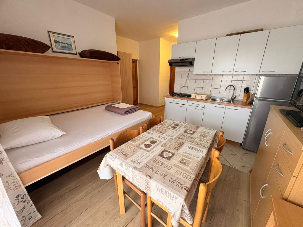На территории нашего двора для каждой квартиры предусмотрено одно крытое парковочное место. Также имеются парковочные места для нескольких автомобилей на каждую квартиру. Во вспомогательном здании гости могут воспользоваться таверной для общения и приготовления пищи, где имеется необходимое оборудование. Бассейн с переливом с двух сторон оборудован двумя видами водных массажеров и доступен для гостей с 08:00 до 22:00. Шезлонги и зонтики включены в стоимость квартиры. Стационарный навес длиной 12 м обеспечивает надежную защиту от солнца. Два тренажера доступны для гостей с 08:00 до 22:00 и включены в стоимость квартиры. Стиральная машина находится во вспомогательном здании и доступна для гостей с 08:00 до 22:00 и включена в стоимость квартиры. Хозяева всегда готовы помочь с приготовлением еды на гриле.