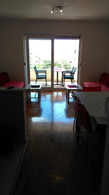 Апартаменты S2 (2+2) расположены в городе Промайна, в центре города, чуть выше (севернее) церкви — примерно в 100 м от главного пляжа, по адресу: Прилаз обали, 24. Рядом с апартаментами есть парковка на одну машину.