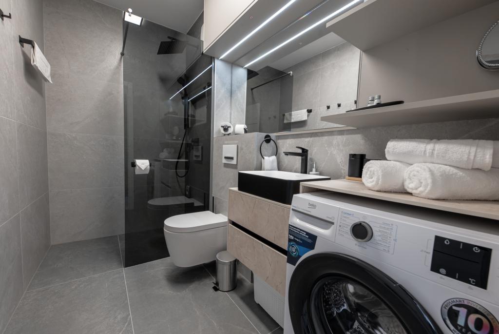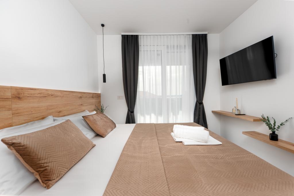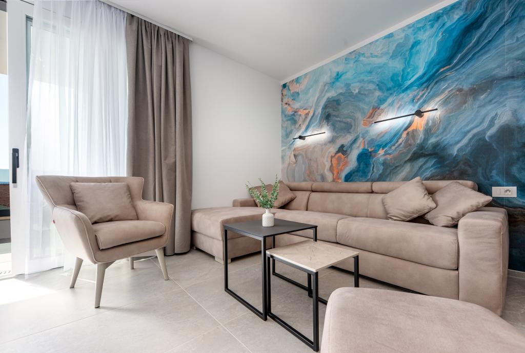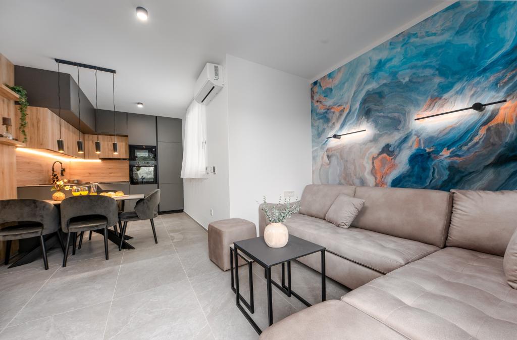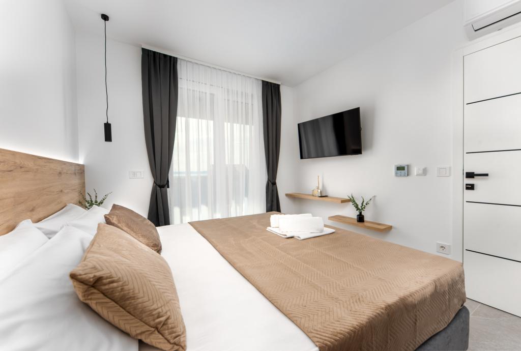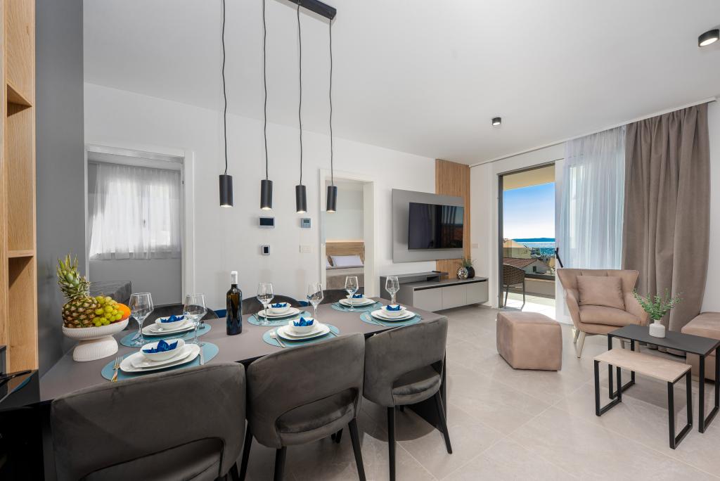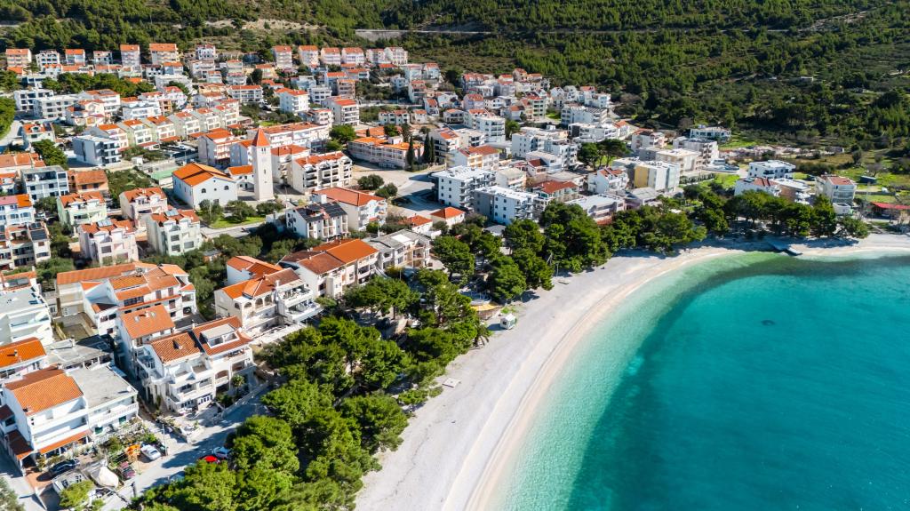 Апартаменты Sunshine-Breeze по адресу ул. Прилаз обали 22а в Промайне предлагают полностью оборудованные современные апартаменты на 3 человека (4+2 человека) и 3 человека (2+2 человека) в тихой части города, идеально подходящие для спокойного отдыха. Комплекс расположен всего в 2 минутах ходьбы от главного пляжа. Все апартаменты оборудованы кондиционерами, бесплатным Wi-Fi, парковкой и просторными террасами для наслаждения средиземноморской атмосферой. Из апартаментов 2+2 открывается вид на море и Бийоково, а из апартаментов 4+2 — на море. Апартаменты Sunshine-Breeze — это недавно построенный комплекс. Все кухни современно оборудованы (холодильник с морозильной камерой, плита, духовка, чайник, посудомоечная машина, кофеварка...). Все ванные комнаты современно оборудованы стиральной машиной, феном. Кровати с пружинным блоком и высококачественными медицинскими матрасами Superlux. Это идеальный выбор для семей, пар и всех, кто хочет насладиться красотами Макарской Ривьеры.