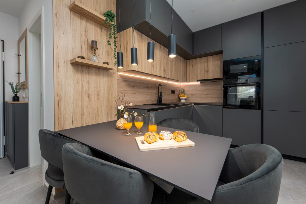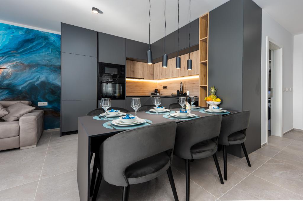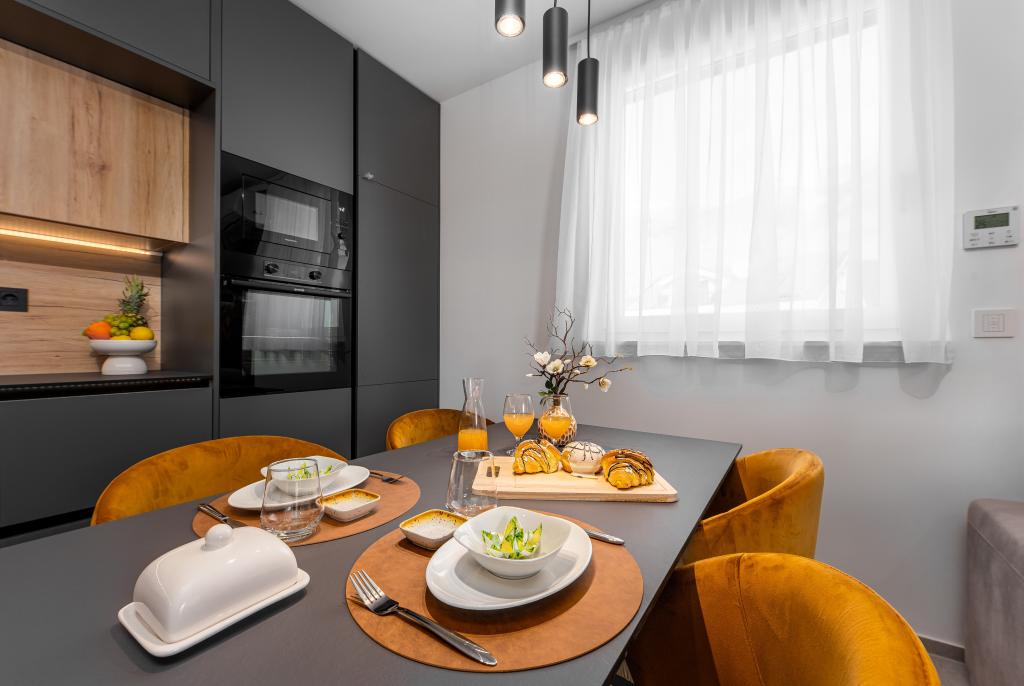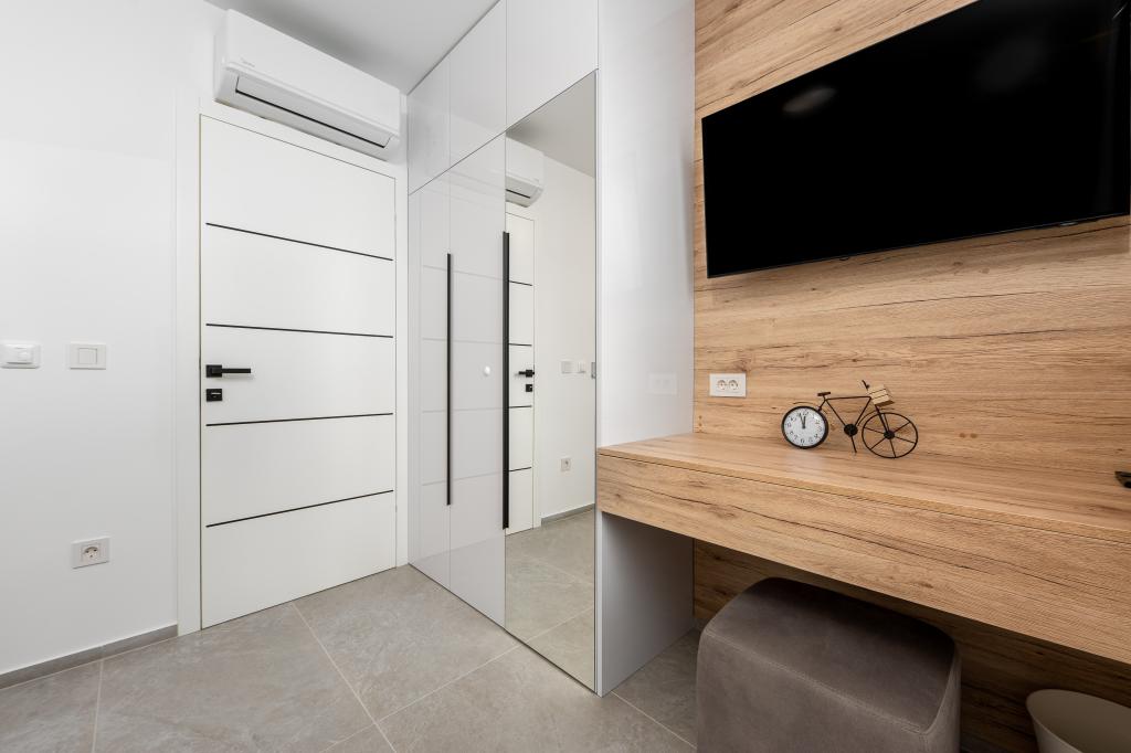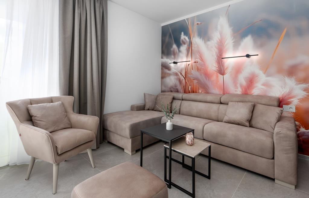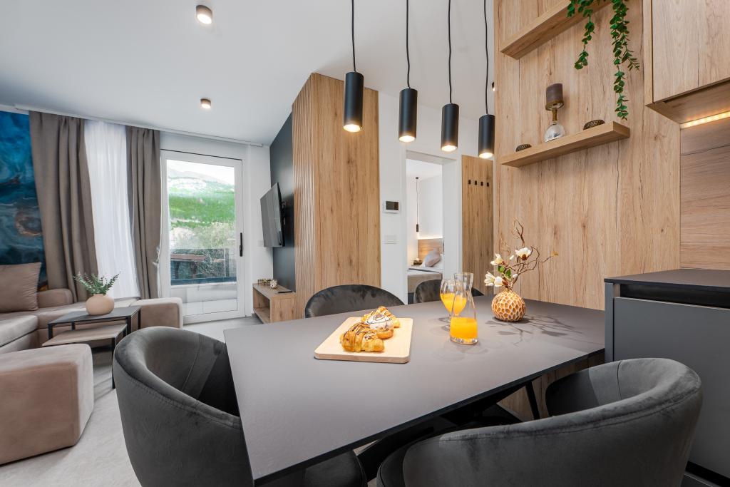 Апартаменты Sunshine-Breeze по адресу ул. Прилаз обали 22а в Промайне предлагают полностью оборудованные современные апартаменты на 3 человека (4+2 человека) и 3 человека (2+2 человека) в тихой части города, идеально подходящие для спокойного отдыха. Комплекс расположен всего в 2 минутах ходьбы от главного пляжа. Все апартаменты оборудованы кондиционерами, бесплатным Wi-Fi, парковкой и просторными террасами для наслаждения средиземноморской атмосферой. Из апартаментов 2+2 открывается вид на море и Бийоково, а из апартаментов 4+2 — на море. Апартаменты Sunshine-Breeze — это недавно построенный комплекс. Все кухни современно оборудованы (холодильник с морозильной камерой, плита, духовка, чайник, посудомоечная машина, кофеварка...). Все ванные комнаты современно оборудованы стиральной машиной, феном. Кровати с пружинным блоком и высококачественными медицинскими матрасами Superlux. Это идеальный выбор для семей, пар и всех, кто хочет насладиться красотами Макарской Ривьеры.