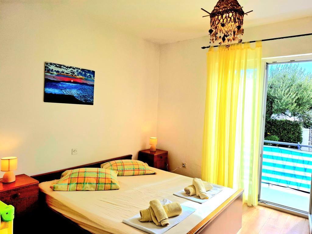 Мы предлагаем комфортабельные и просторные номера прямо на берегу моря, идеально подходящие для путешественников, ищущих недорогое жилье в отличном месте. В каждом номере есть собственная ванная комната и балкон, удобные кровати и напольный вентилятор для более комфортного проживания. В Желтом номере есть место для детской кроватки (бесплатно) и дополнительной кровати (за дополнительную плату), поэтому он может быть использован как семейный номер. К услугам гостей бесплатная парковка, большая терраса и хорошо оборудованный общий уголок для приготовления завтрака в просторном холле. (Кухни нет). Особым преимуществом является наш сад в тени оливковых деревьев с шезлонгами и столиками – идеальное место для отдыха с быстрым Wi-Fi для всех гостей. Без телевизора и кондиционера мы ориентируемся на настоящий летний отдых. Мы расположены в нескольких шагах от пляжей, набережной и пляжных баров, что делает нас идеальной базой для активного отдыха по доступной цене. Всего в 15 минутах ходьбы от нас находится город Раб.