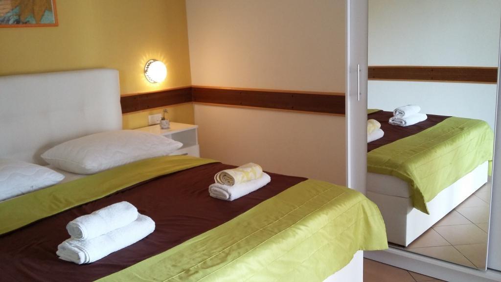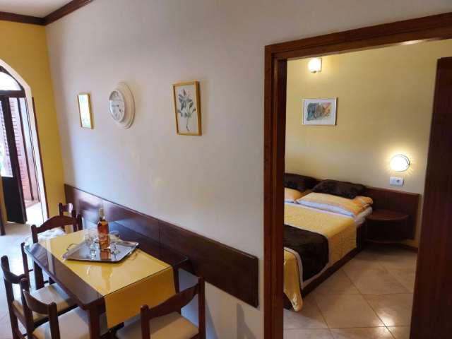 Апартаменты Zlata расположены в непосредственной близости от города Раб, в тихой части острова под названием Палит, в привлекательном месте у городского парка Комрчар и в непосредственной близости от городского пляжа. Оттуда на катерах-такси можно добраться до полуострова Фрканья с множеством красивых и уединенных средиземноморских пляжей и бухт, поэтому его называют «Островом любви». Прогулочная набережная за 10 минут доставит вас в старый город, а также в новую часть города. Мы имеем более чем 30-летний опыт сдачи апартаментов в аренду. Мы с нетерпением ждем каждого туриста. Большая часть дома – творение самого владельца, который уделил особое внимание каменным деталям (внешние стены дома, колодец и т. д.). Большие террасы с видом на благоустроенный зеленый сад также являются особенностью. Во дворе дома есть закрытая парковка.