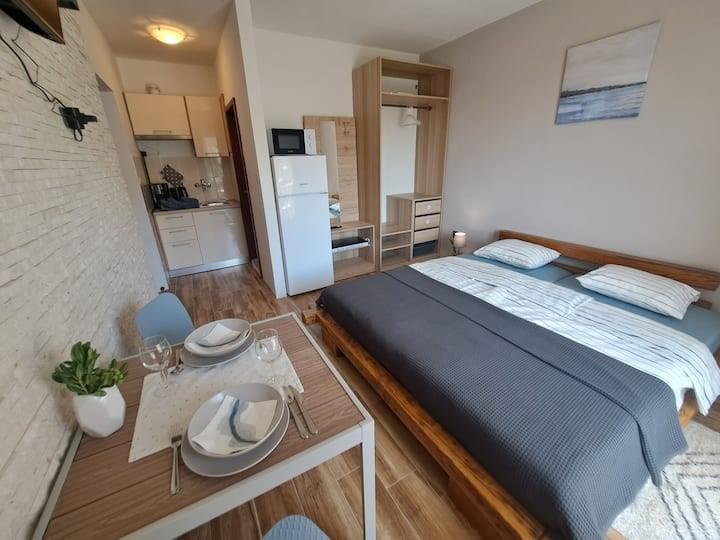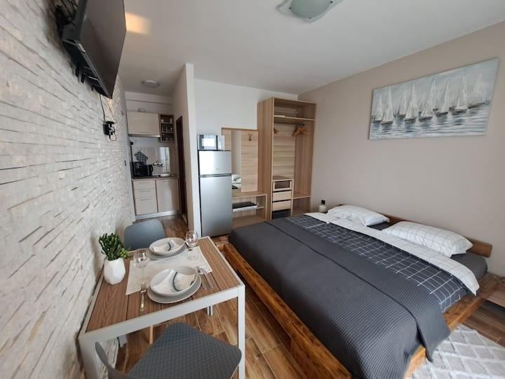 Меблированные апартаменты, постельное белье и полотенца включены в стоимость бронирования. Бесплатная парковка в 50 м от апартаментов. Возможность бесплатного пользования мангалом.
