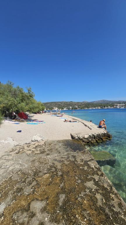 Апартаменты расположены всего в 150 метрах от моря и пляжа, в приятной природной обстановке с множеством деревьев, обеспечивающих естественную тень и идеальную атмосферу для отдыха в жаркие летние дни. На пляже есть душ, а прямо рядом с пляжем находится кафе, идеально подходящее для утреннего кофе или освежающего напитка у моря. До супермаркета Tommy можно дойти пешком за 12 минут вдоль моря, что делает расположение очень удобным для приятного и беззаботного отдыха.