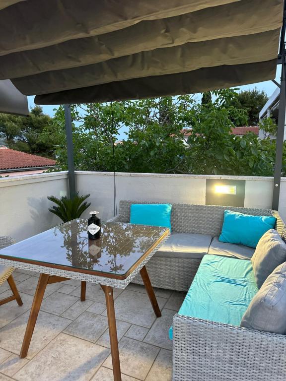 Просторный дом, вмещающий до 16 человек, идеально подходит для больших семей или групп друзей, желающих насладиться отдыхом у моря. В распоряжении гостей большая терраса площадью 50 м² с прекрасным видом на море, идеально подходящая для дружеских встреч, обедов на свежем воздухе и любования закатами. На террасе также есть газовый гриль, идеально подходящий для приготовления вкусных блюд в непринужденной атмосфере. Перед домом имеется парковка на 5 автомобилей, а также 5 велосипедов, идеально подходящих для изучения окрестностей и приятных прогулок вдоль моря. Дом расположен в отличном месте, всего в 150 м от моря и пляжа, в окружении зелени и естественной тени, обеспечивая идеальное сочетание комфорта, уединения и близости ко всем удобствам для незабываемого отдыха.