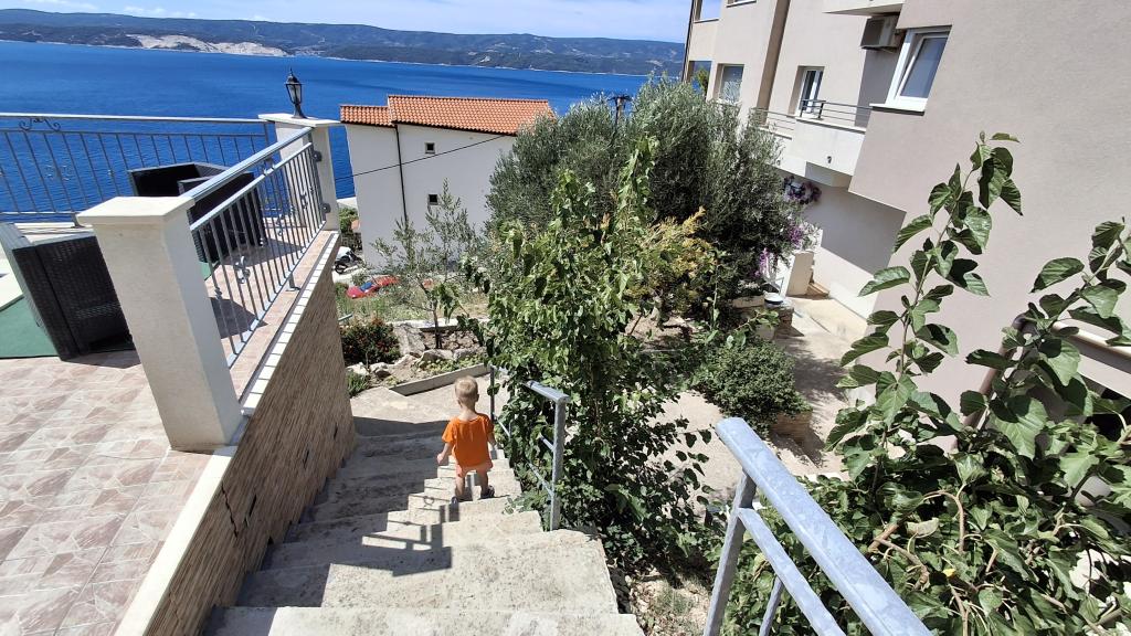 Квартира рекомендуется, все, как описано (посудомоечная машина, духовка, большой холодильник, биде). Потрясающий вид на море с балкона и кухни. В одной спальне есть дополнительный балкон с видом на море, а в другом окне с видом на прекрасные горы. О свойстве есть бассейн с великолепным видом на море и горы. На близлежащем пляже (внизу) очень интимное, не было много людей - небольшой пляж галька и много мест, каменистые / бетона и, что важно, теневые. Очень приятно хост (Иво приветствовать вас и вашу семью) - доброжелательными и вежливыми. Однажды он принес нам теплые печенья с начинкой.