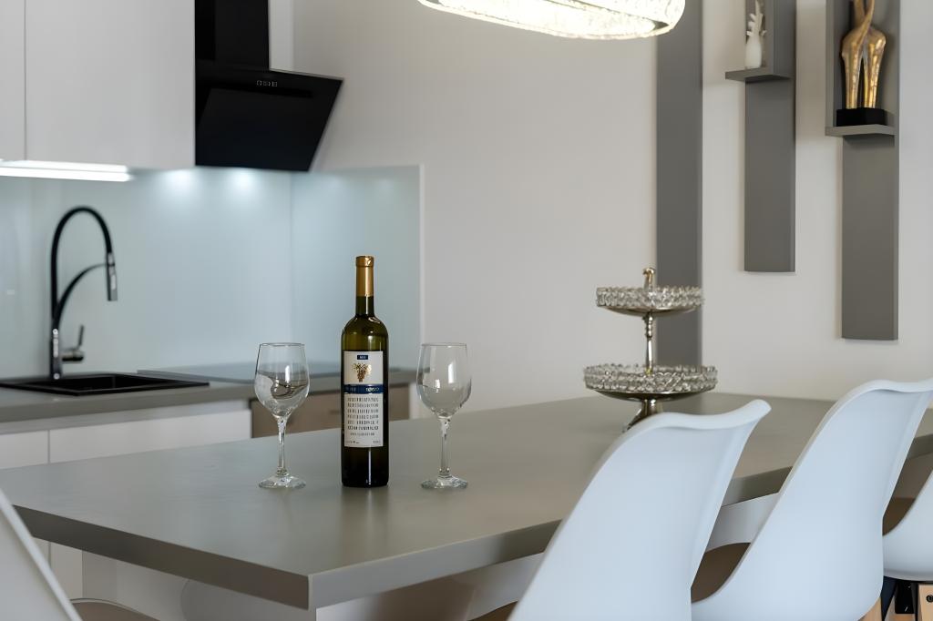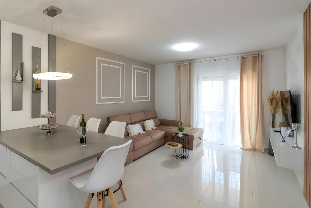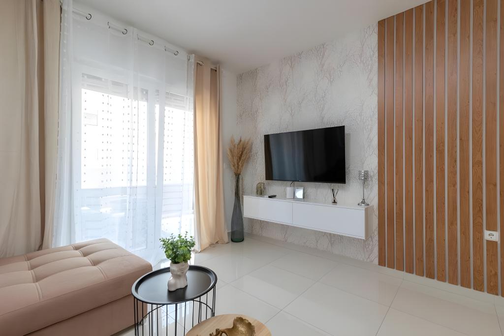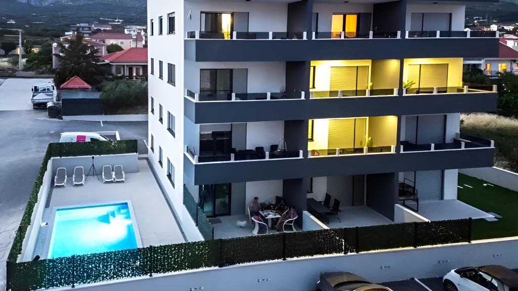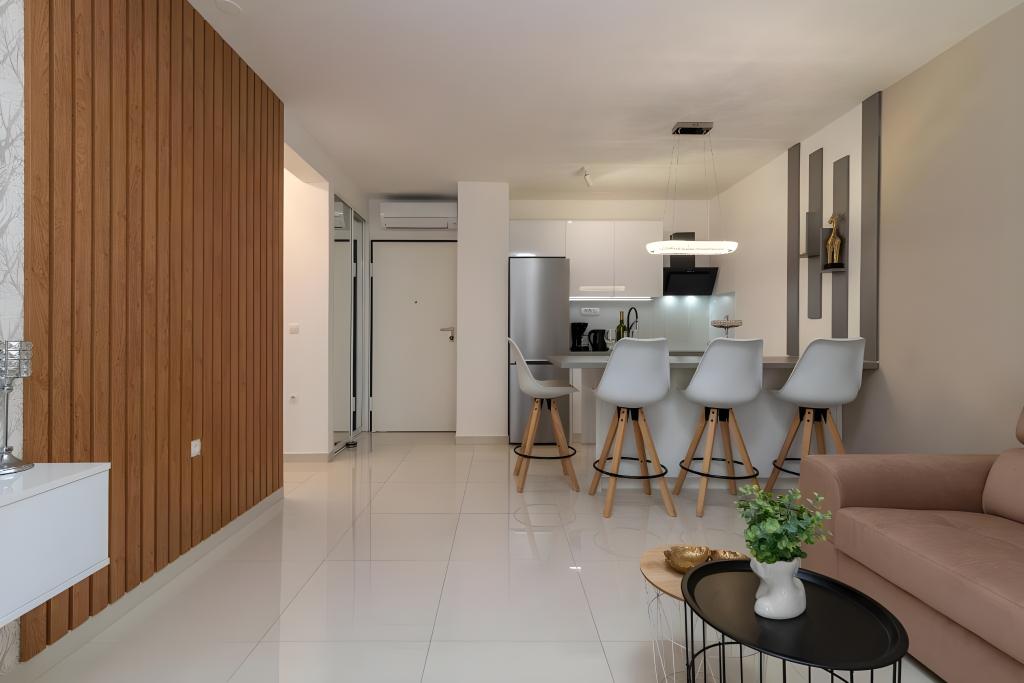 Апартаменты расположены в современном новом здании в тихом и ухоженном районе, идеально подходящем для спокойного и беззаботного отдыха. К услугам гостей открытый бассейн на территории здания, идеально подходящий для отдыха в теплые дни, и бесплатная парковка. Апартаменты состоят из спальни с удобной двуспальной кроватью, гостиной с диваном-кроватью, полностью оборудованной кухни, ванной комнаты и балкона. Пространство оформлено в современном стиле с акцентом на комфорт и функциональность, создавая приятную и расслабляющую атмосферу. Балкон дополнительно обогащает пространство и является идеальным местом для утреннего кофе или вечернего отдыха. Расположение обеспечивает уединение и покой, одновременно обеспечивая легкий доступ ко всем важным удобствам в этом районе, что делает эти апартаменты идеальным сочетанием отдыха и практичности.