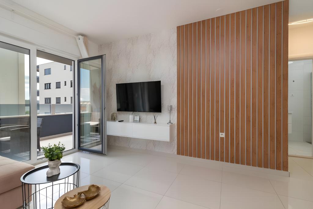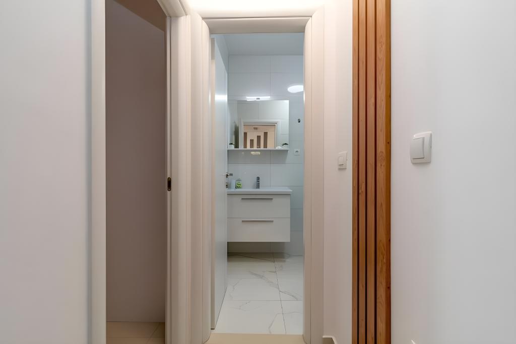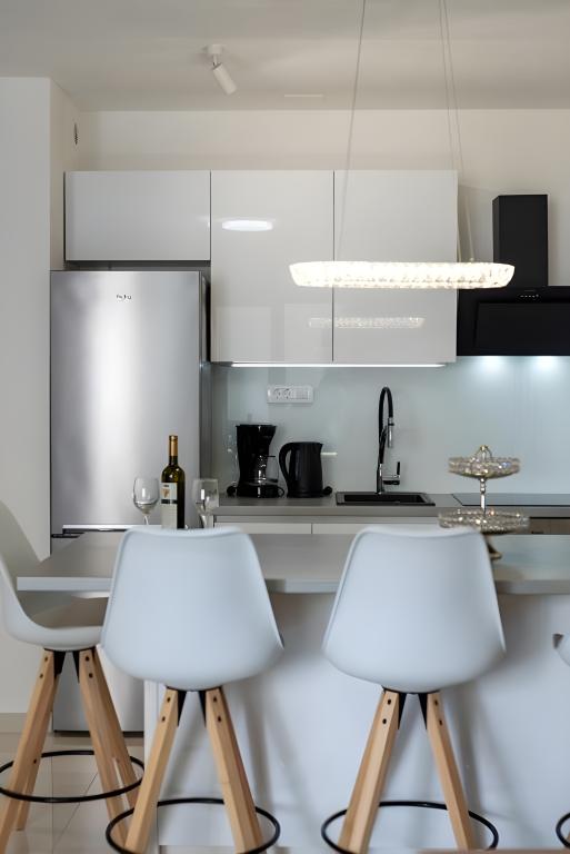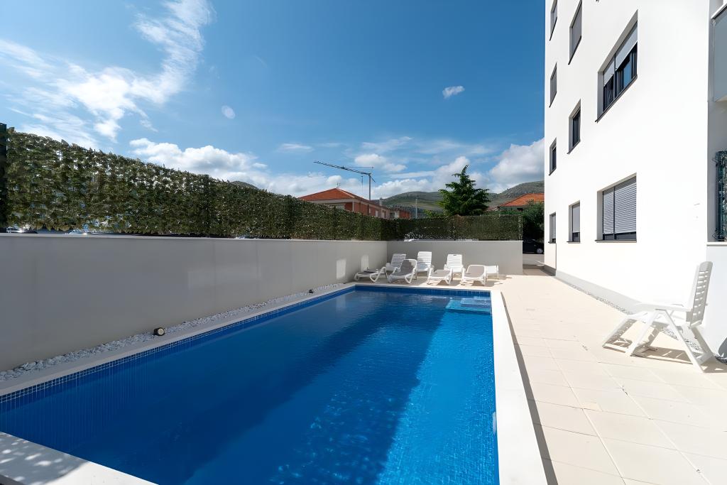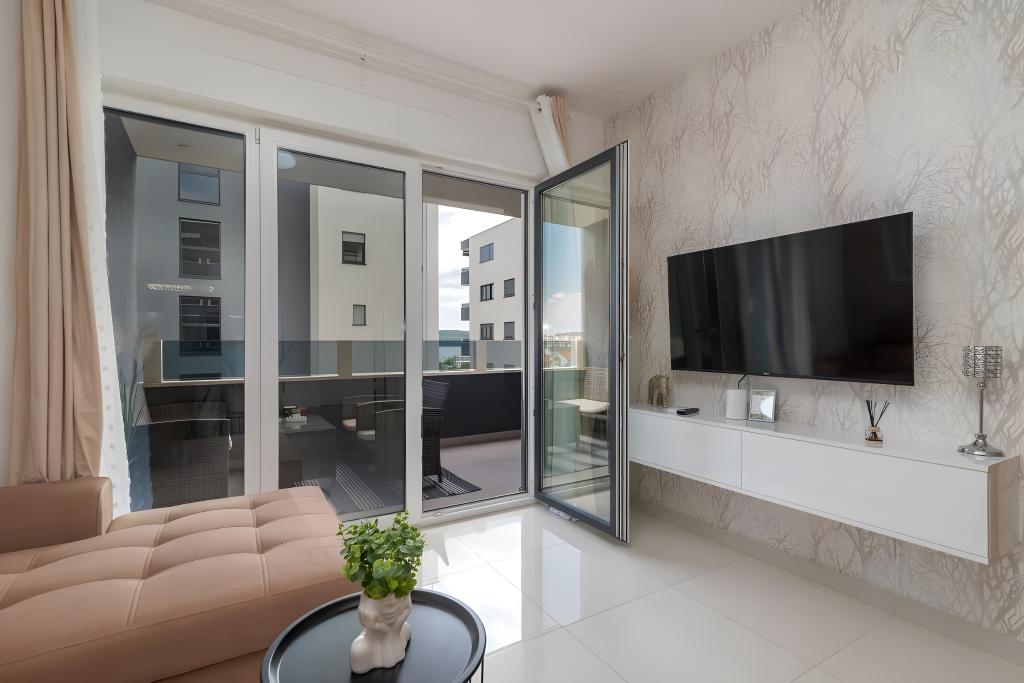 Апартаменты расположены в современном новом здании в тихом и ухоженном районе, идеально подходящем для спокойного и беззаботного отдыха. К услугам гостей открытый бассейн на территории здания, идеально подходящий для отдыха в теплые дни, и бесплатная парковка. Апартаменты состоят из спальни с удобной двуспальной кроватью, гостиной с диваном-кроватью, полностью оборудованной кухни, ванной комнаты и балкона. Пространство оформлено в современном стиле с акцентом на комфорт и функциональность, создавая приятную и расслабляющую атмосферу. Балкон дополнительно обогащает пространство и является идеальным местом для утреннего кофе или вечернего отдыха. Расположение обеспечивает уединение и покой, одновременно обеспечивая легкий доступ ко всем важным удобствам в этом районе, что делает эти апартаменты идеальным сочетанием отдыха и практичности.
