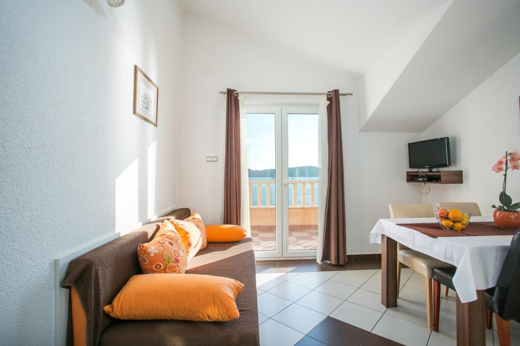 Если вы ищете тихое и спокойное место, где можно отдохнуть, забыть обо всех заботах, полностью расслабиться, насладиться шумом волн и прекрасным видом, то вилла «Матия» — лучший выбор для вашего идеального отдыха. К дому обеспечен подъезд, есть парковочные места, апартаменты имеют отдельные входы, все оборудованы кондиционерами, в каждых апартаментах есть бесплатный беспроводной интернет, ЖК- или смарт-телевизор и спутниковые каналы, балконы ориентированы на юг и имеют вид на море и пляж. Дом расположен всего в 20 метрах от моря и в 40 метрах от пляжа. Рестораны и магазины находятся всего в нескольких минутах ходьбы. Рядом с домом проходит 3-километровая набережная вдоль моря.