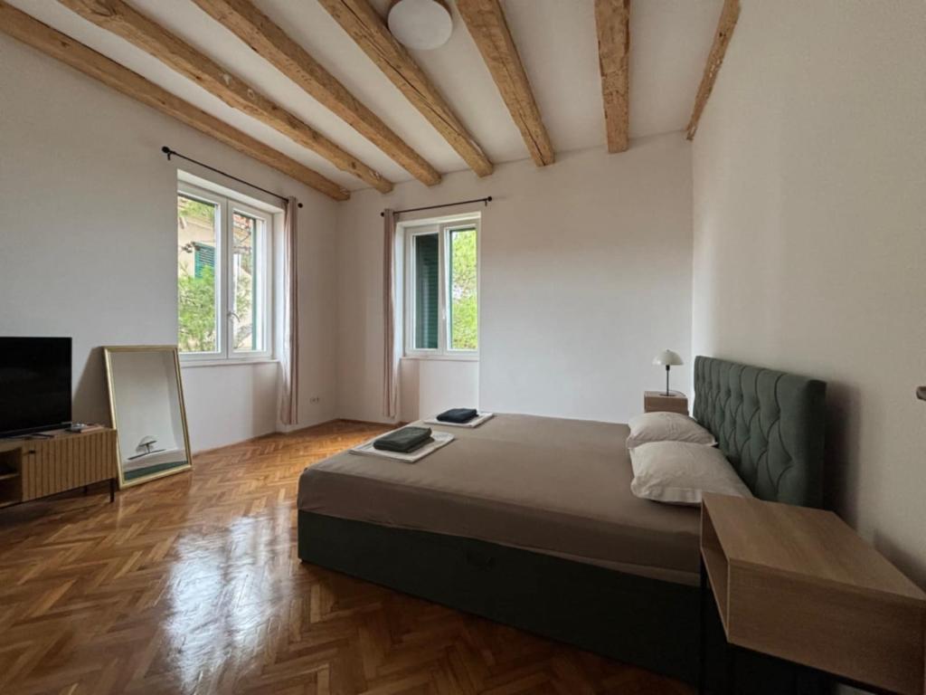 Добро пожаловать в апартаменты «Спас»! По улице Святого Спасы, которая проходит мимо церкви Святого Спасы, вы за несколько минут доберетесь до центра города. От жаркого средиземноморского солнца вас защитит тень вековых кипарисов, питтоспорумов и сосен, украшающих улицу и сад перед вашими апартаментами. В саду вы можете пожарить барбекю и отдохнуть на шезлонгах и скамейках. Апартаменты расположены на втором этаже, с видом на Шибеникский залив и крепость Святого Михаила, до которых всего десять минут ходьбы. Апартаменты «Спас» находятся на тихой тупиковой улице, недалеко от всех удобств, но при этом кажется, что вы находитесь вдали от городской суеты.