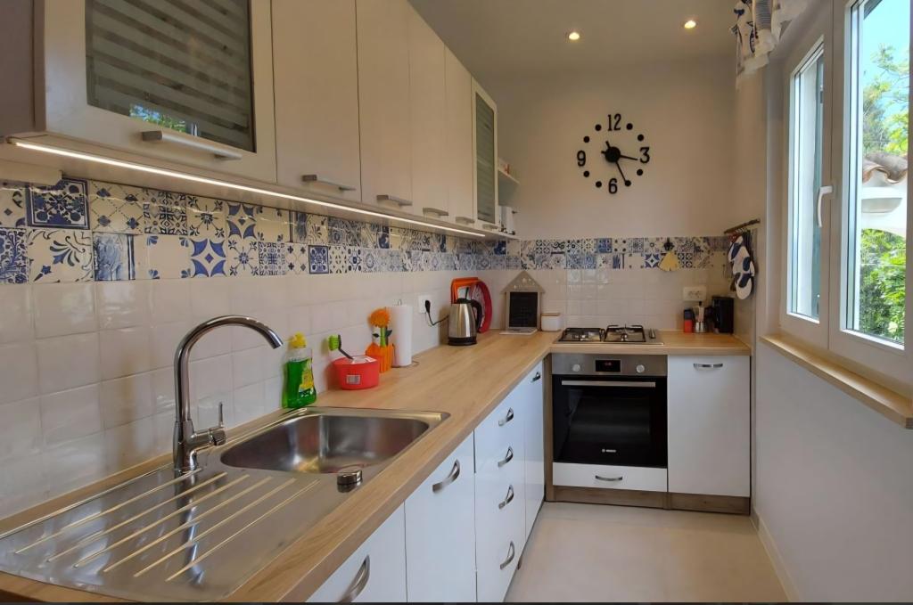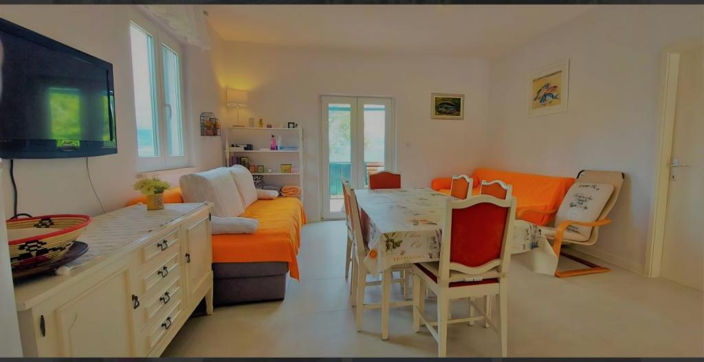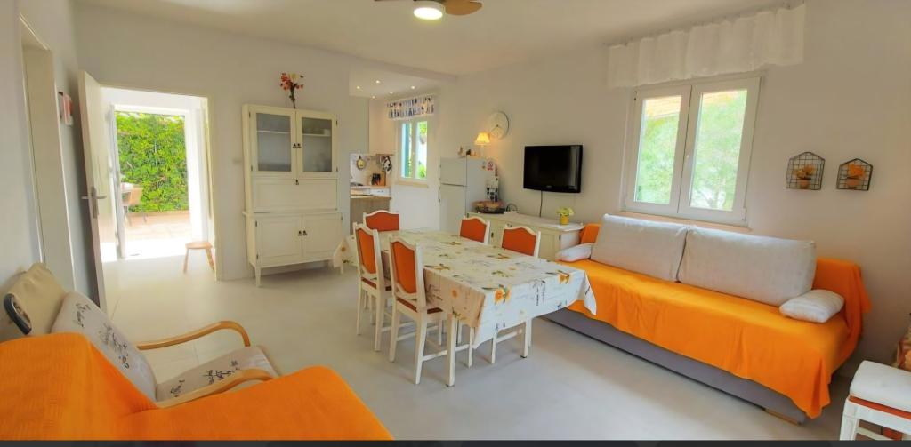 Дом на Чиово есть две квартиры, расположенные рядом с морем, полностью оборудованным и современным, в тихой деревне с видом на заливе Каштел и Сплит. Идеальное место для мира и релаксации. В каждой квартире есть 2 спальни, гостиная, кухня, ванная комната. Квартира на первом этаже есть большая и заднюю террасу и квартиру в мансарде небольшую террасу. Парковка на 4 машины во дворе. Дом расположен в 1 км от Слатина и в 5 км от Трогира. Трогир проходит регулярный автобус и паром из Слатина. Пляж в передней части дома галечный пляж и предлагает такие удобства, как рестораны и развлекательные игры. Сплит составляет около 30 км, аэропорт около 8 км и Национальный парк Крка 50 км.