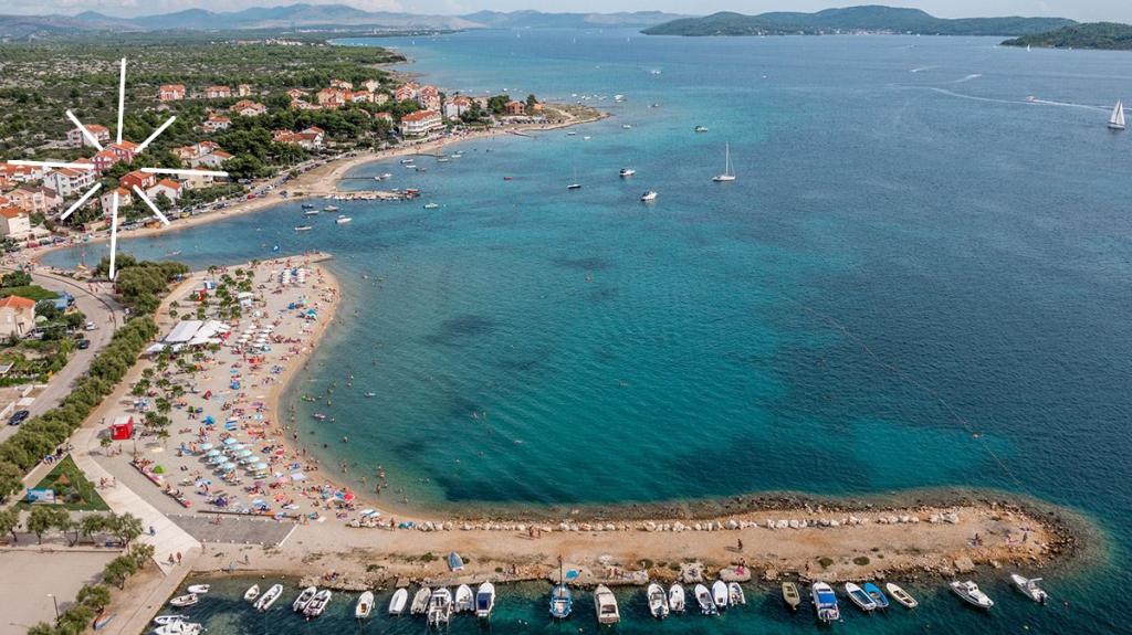 Объект имеет бесплатное парковочное место. Центр находится ок. 200 метров, где полно кафе и ресторанов. Также есть магазин, киоск по продаже хлебобулочных изделий, газетный киоск, по продаже мороженого, батут, детская игровая площадка, футбольная и баскетбольная площадки, боулинг и другие объекты. Там вы можете арендовать банк или оплатить организованную поездку на близлежащие острова, такие как Првич, Зларина. Национальный парк Корнати и Крка находятся всего в 20 минутах езды на машине, а город Шибеник ок. 15 минут.
