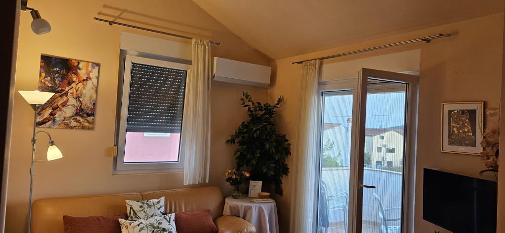 Новая и современная квартира в тихом месте в Сриме недалеко от Водице с видом на море. Красивый ландшафтный пляж длиной ок. 100 метров. Объект расположен ок. 200 метров от центра села и 25 минут пешком (по набережной) до города Водице.