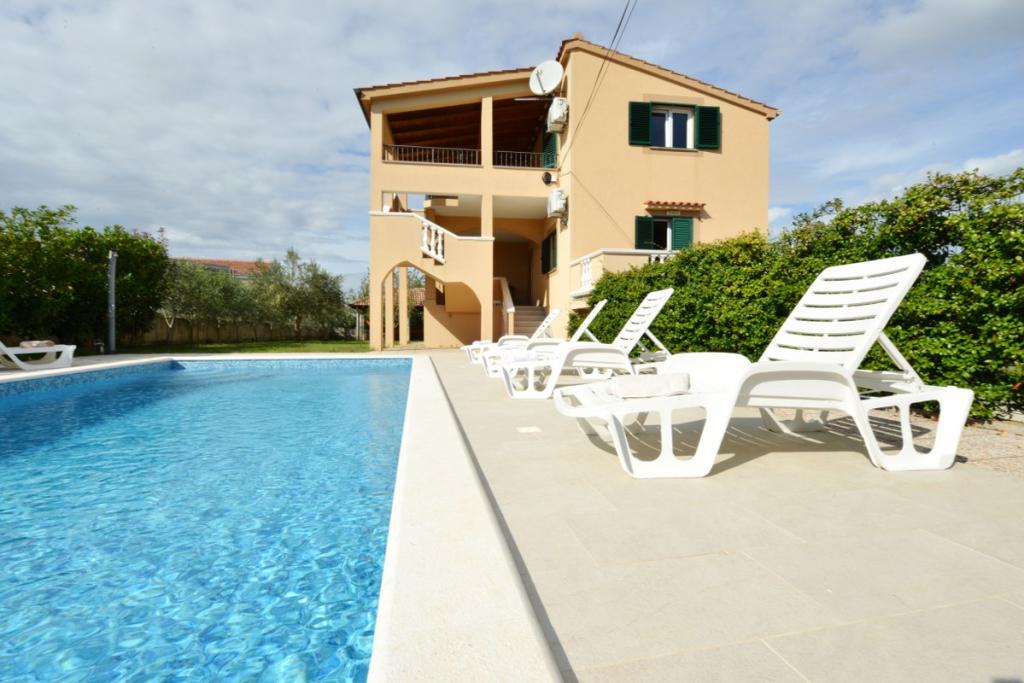 Полностью оборудованная и современная вилла для семейного отдыха с бассейном размером 8 x 4 метра в глубине Сукошана. Дом расположен в очень уединенном и тихом месте, в 4 км от пляжа и в 15 км от Задара, с которым он соединен автомагистралью (10 минут). Это двухэтажный дом, состоящий из одной трехместной и трех двухместных спален, двух ванных комнат, двух гостиных и двух кухонь, двух балконов, отдельного домика для барбекю и навеса перед домом. Из дома открывается прекрасный вид на Велебит и регион Равна Котар, а всего в 4 минутах ходьбы находится место (100 м над уровнем моря) с панорамным видом на Сукошан, острова Задарского архипелага и чудесный закат. В доме есть безлимитный и бесплатный беспроводной интернет, бесплатная парковка, органически выращенные овощи, которые доступны гостям. По договоренности возможна организация приготовления традиционных далматинских блюд.