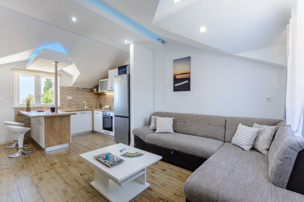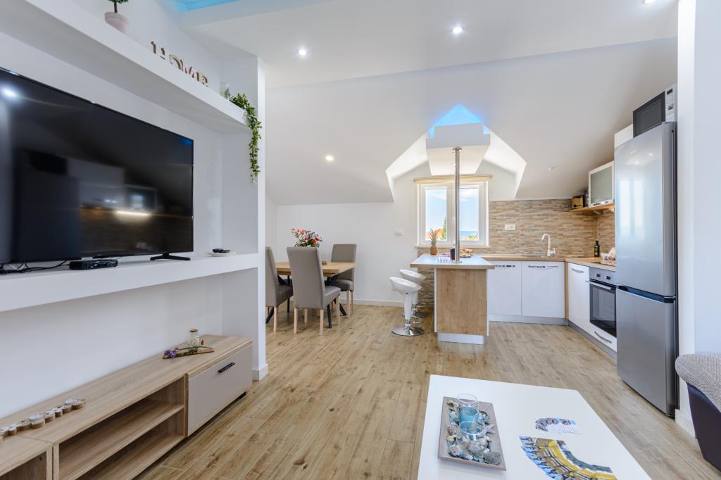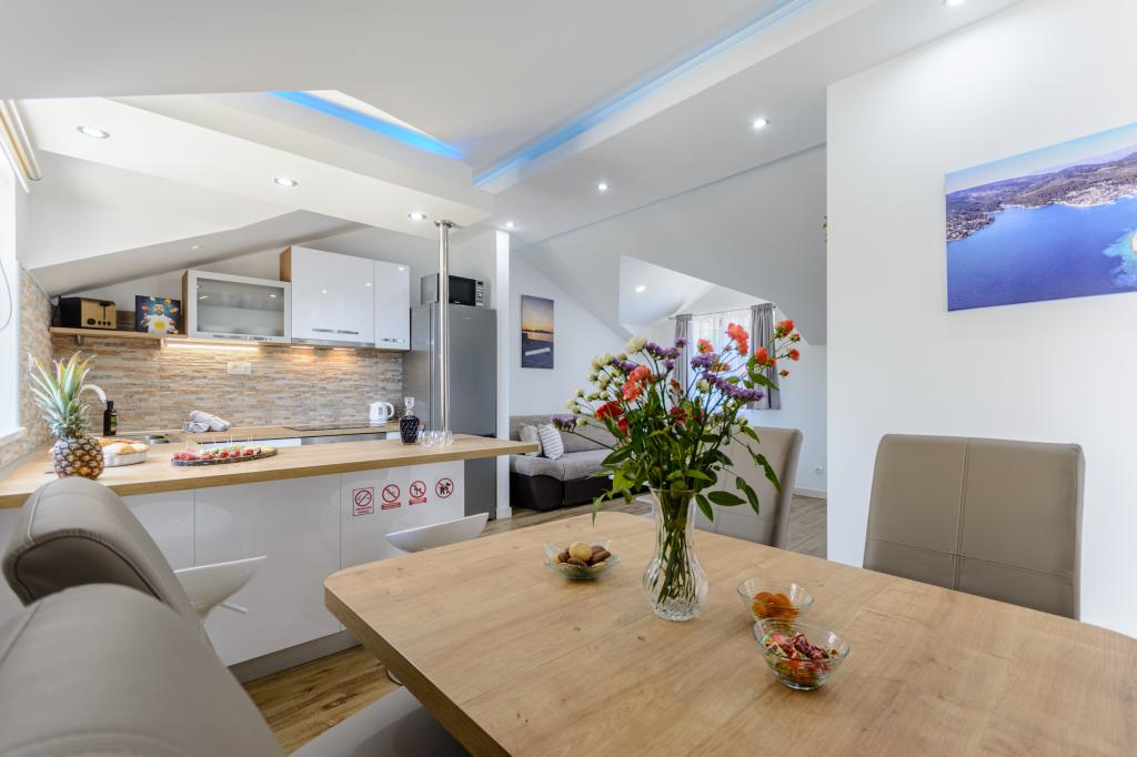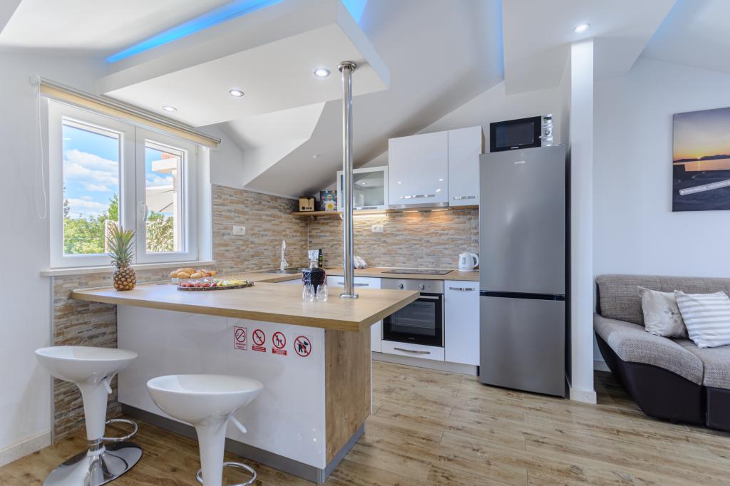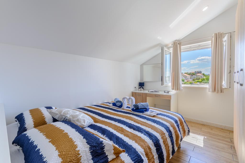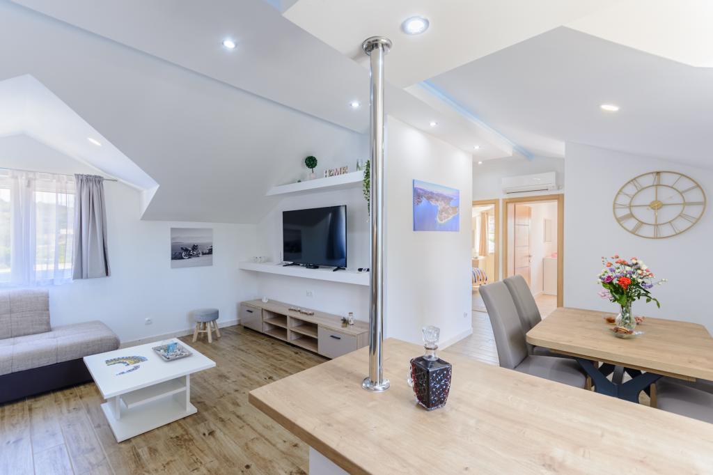 Добро пожаловать в наши очаровательные апартаменты, расположенные в самом центре Сумартина на прекрасном острове Брач. Апартаменты расположены всего в 100 метрах от моря и предлагают идеальное сочетание комфорта и удобства. Они вмещают до 5 гостей (4+1) и идеально подходят для семей, пар или друзей, желающих отдохнуть и насладиться очарованием острова. Насладитесь спокойным отдыхом в пешей доступности от пляжей, ресторанов и порта. Также имеется охраняемая парковка. С нетерпением ждем вашего приезда!