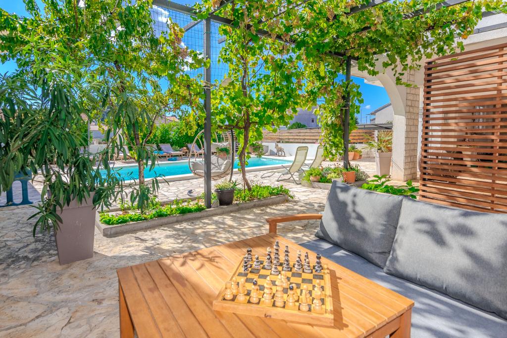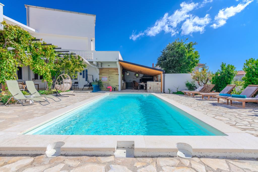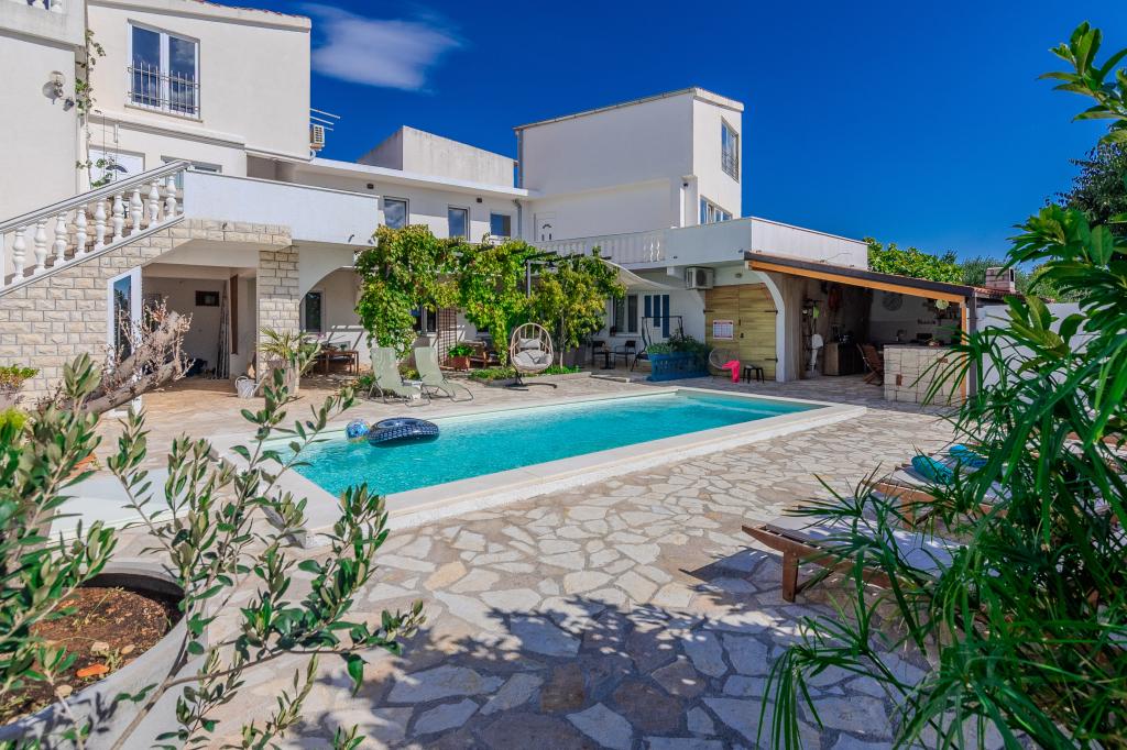 Апартаменты расположены в небольшой рыбацкой деревушке Трибунь. В нескольких минутах ходьбы от дома находится рынок, где вы можете ежедневно покупать свежую рыбу, сезонные фрукты и овощи. Большой сад с бассейном и другими удобствами сделает ваш отдых приятным. Из Трибуня организуются морские прогулки в Национальный парк Корнати.