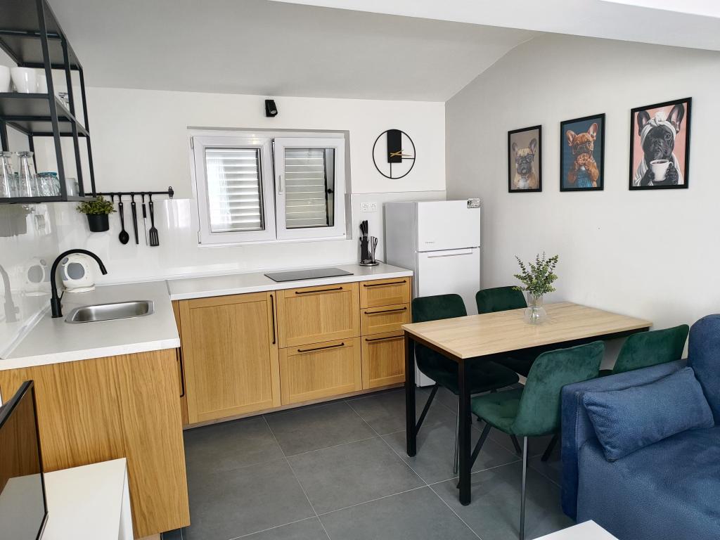 Дом расположен в 50 м от главного пляжа. Он состоит из 5 двухкомнатных апартаментов вместимостью 25 человек, расположенных на тихой улице. Рядом находятся рестораны, магазины, пекарня, пиццерия. Парковка предоставляется.
