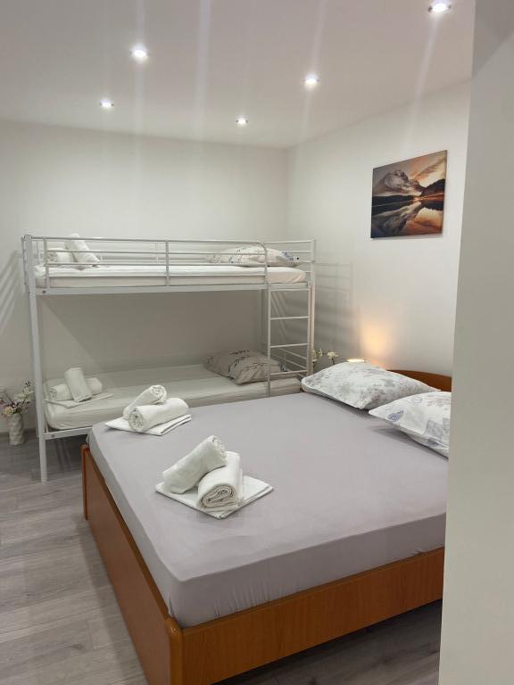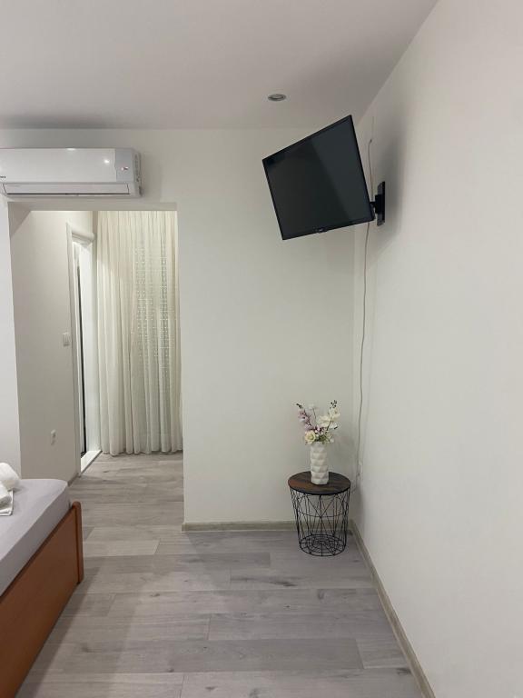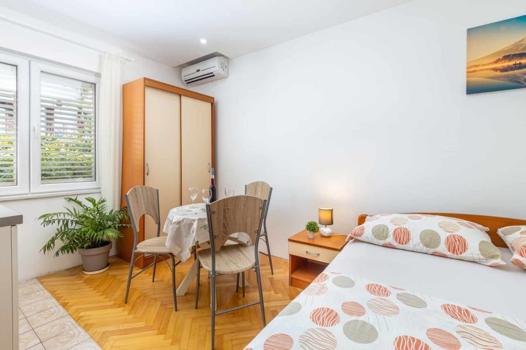 Квартира-студия Тучепи Анита. Квартира-студия и кухня полностью оборудованы, двуспальная кровать, двухъярусная кровать, кондиционер, ванная комната, терраса, балкон, постельное белье, полотенца, бесплатная парковка, дополнительная кровать по запросу, детская кроватка. Здесь есть пляж в 200 метрах от квартиры. это до 4 минут песка. Пляж очень большой, есть навесы, пляж небольшой. Магазины, рестораны, кафе находятся очень близко от квартиры, до 100 метров.