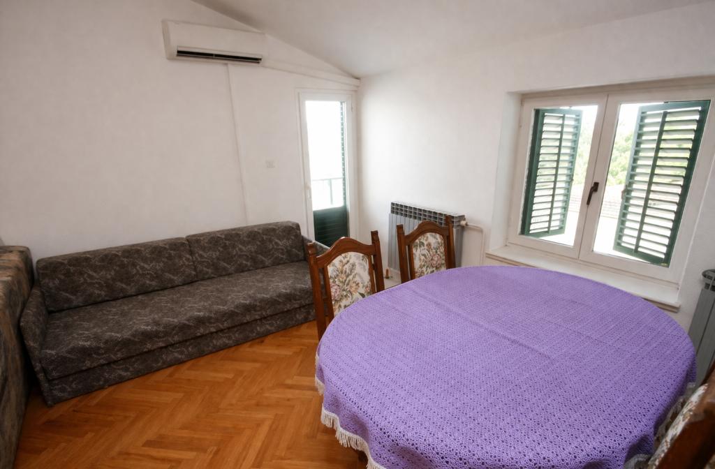 Добро пожаловать в наш жилой комплекс, расположенный в живописном Турне, идеальном месте для отдыха и знакомства с Далмацией. Комплекс состоит из 4 комфортабельных и оборудованных квартир, каждая из которых имеет свои особенности, обеспечивающие комфорт и приватность. Гости могут отдохнуть в общем тенистом дворе с большим камином для общения. Пляж находится всего в 150 метрах, а ресторан, кафе и магазин — в 200 метрах от здания. Во всех апартаментах есть бесплатный Wi-Fi и частная парковка, что дополнительно способствует вашему приятному пребыванию. Три из четырех квартир имеют вид на море, а квартиры на втором этаже имеют общий балкон.