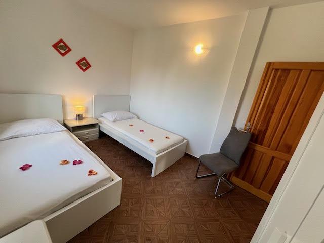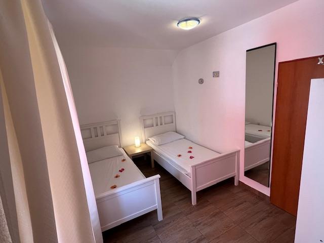 В наших апартаментах есть кондиционер, спутниковое телевидение, Wi-Fi, парковка на собственной территории, стиральная машина. Это включено в стоимость. У нас есть площадка для барбекю, которой наши гости могут пользоваться бесплатно, она включена в стоимость проживания. Наши апартаменты оборудованы всем необходимым для вашего отдыха. Они расположены на участке площадью 3500 м2. Квартира площадью 150 м², 2 спальни, кухня, столовая, ванная комната с душем, гостиная и терраса. Расстояние до моря прямо на берегу моря и в 100 м от моря. Я снимаю квартиру. Индира, Бепо, Грго, передвижной дом Лука и дом отдыха Индира.