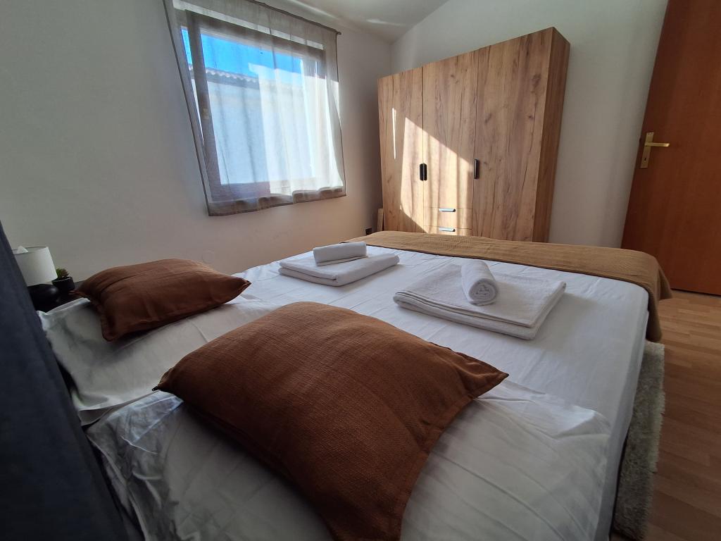 Красиво и современно оформленная квартира на четверых на острове Вир идеально подходит для семейного отдыха. Он расположен в нескольких минутах от пляжа, подходящего для детей, центра, где есть набережная, почта, церковь, автобусная станция, которая находится в непосредственной близости, и магазин. Квартира площадью 50 м2 с отдельным входом. В стоимость входит парковочное место, кондиционеры по всей квартире, мангал, летний душ во дворе. Он состоит из двух спален, ванной комнаты с душем, кухни со столовой и террасы. Он расположен в тихой части острова Вир, но все в пределах досягаемости, что идеально подходит для идеального отдыха.