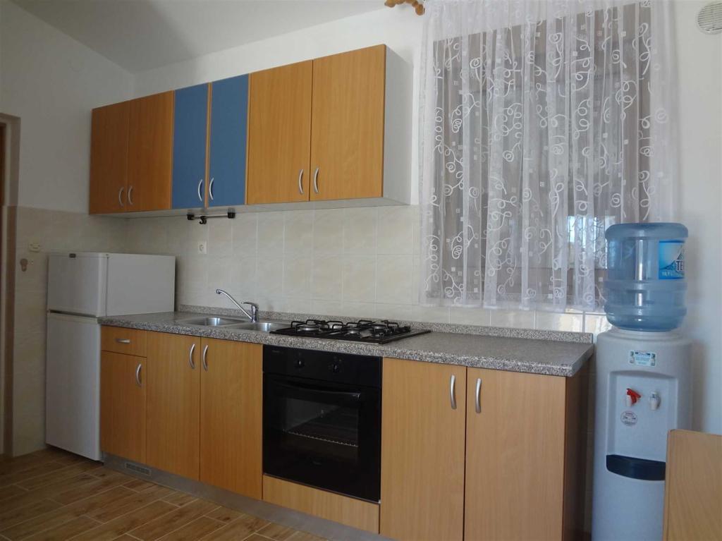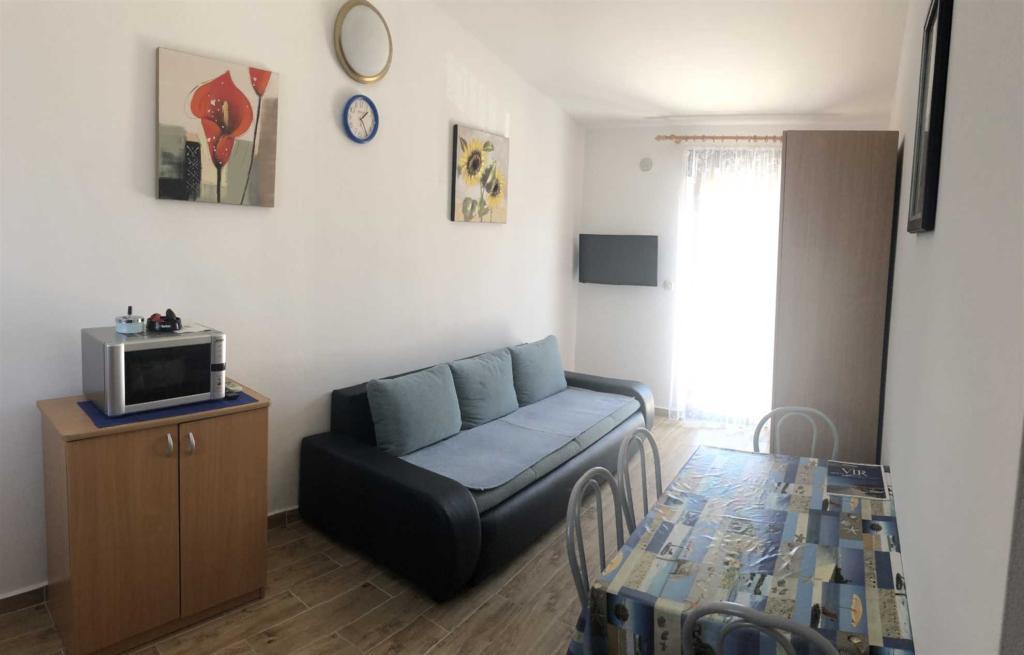 Апартаменты (***) на 4 человека, расположенные на первом этаже в 70 м от пляжа Житна Увала, находятся в 70 м от пляжа. Апартаменты оборудованы LED-телевизором (ТВ+СПУТНИК), радио, Wi-Fi, парковочным местом для одного автомобиля в огороженном дворе, кондиционером (использование включено в стоимость). На кухне вы найдете все необходимое оборудование и бытовую технику (например, холодильник с большой морозильной камерой, микроволновую печь, водонагреватель и т. д.), в спальне — двуспальная кровать и двухъярусная кровать, в гостиной — дополнительная кровать (с дополнительной кроватью в апартаментах могут разместиться 5 человек), просторный крытый балкон площадью 20 м2 с видом на море (острова Паг и Велебит) со столом, стульями и шезлонгами.