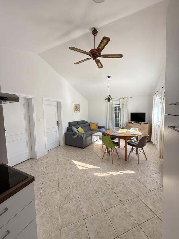 На острове Вир, всего в 150 метрах от моря, расположены двое апартаментов вместимостью до 5 человек. Апартаменты современно оборудованы, оснащены кондиционерами и адаптированы для комфортного проживания. У каждого апартамента есть собственная терраса с зоной отдыха, а на огороженной территории есть доступ к частной парковке и грилю. Близость к морю и пляжу, а также практичные удобства делают эти апартаменты подходящим выбором для семей и небольших групп друзей, ищущих жилье в непосредственной близости от всех основных удобств. Апартаменты подходят для размещения до 5 человек. Они состоят из двух спален, в апартаментах есть ванная комната с душем и стиральной машиной, а также полностью оборудованная кухня, соединенная с гостиной. Для отдыха и жизни на свежем воздухе также есть терраса с зоной отдыха. Апартаменты оснащены кондиционерами и оформлены в современном стиле, идеально подходят для семейного отдыха или проживания в небольшой компании друзей.