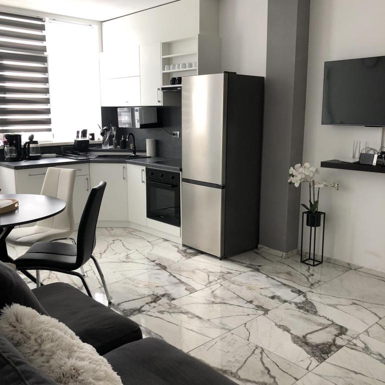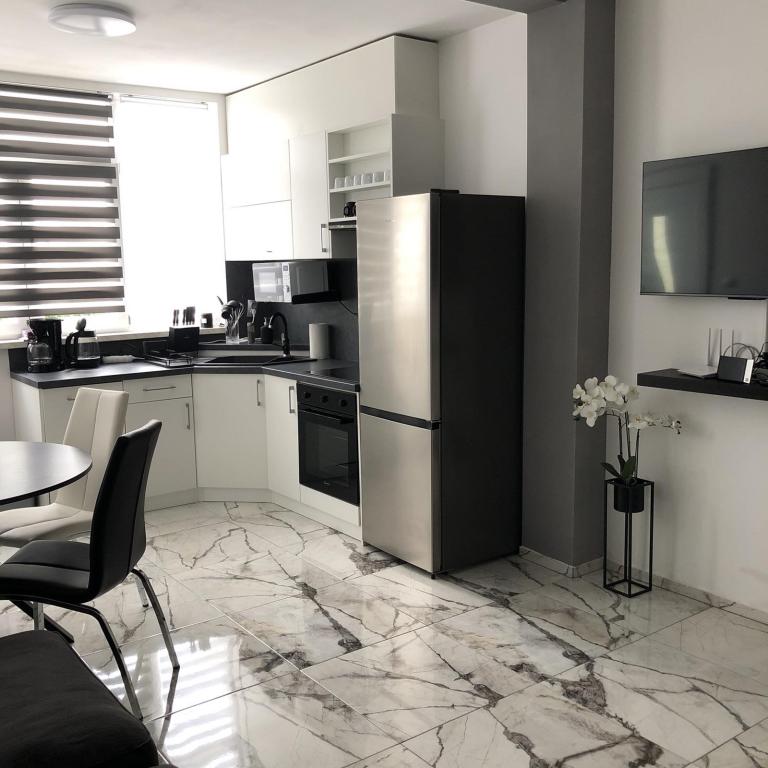 Апартаменты Šmit расположены в первом ряду от моря, всего в нескольких шагах от городского пляжа Ядро, что делает их идеальным выбором для гостей, желающих быть как можно ближе к морю и пляжу. Гостям предоставляется бесплатная парковка на огороженном дворе, что обеспечивает дополнительную безопасность и спокойствие во время их пребывания. В каждых апартаментах есть терраса с видом на море, удобная зона отдыха и телевизор. Апартаменты полностью оборудованы, а кухни включают холодильник, микроволновую печь и всю необходимую посуду для приготовления пищи. В каждых апартаментах есть собственная ванная комната с душем, а все помещения кондиционированы, чтобы сделать ваше пребывание комфортным даже в жаркие летние дни. В непосредственной близости от апартаментов, всего в 5 минутах ходьбы, находятся все важные удобства острова Вир – рестораны, кафе, магазины, пекарня и набережная – что делает апартаменты Jadro отличным выбором для пар, семей и гостей, желающих отдохнуть без необходимости в автомобиле.